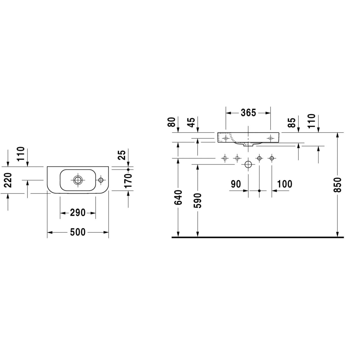 Duravit Happy D.2 Waschbecken 50x22 cm halbrund Klassisch weiß 0711500008