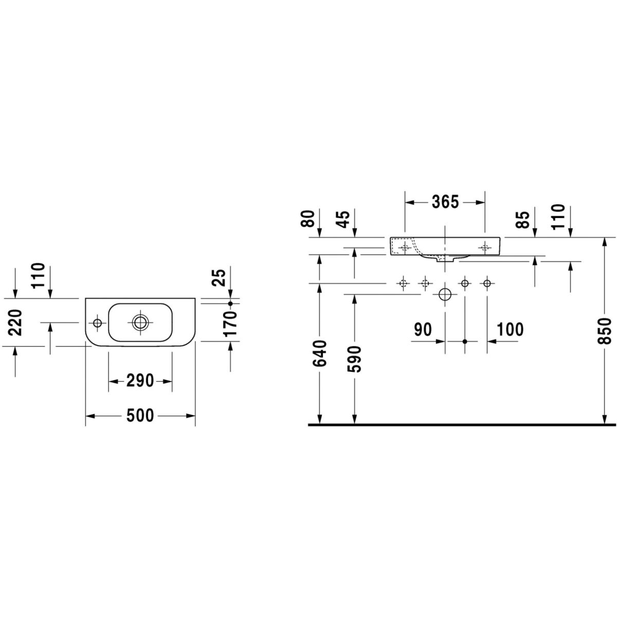 Duravit Happy D.2 Waschbecken 50x22 cm halbrund Klassisch weiß 0711500009