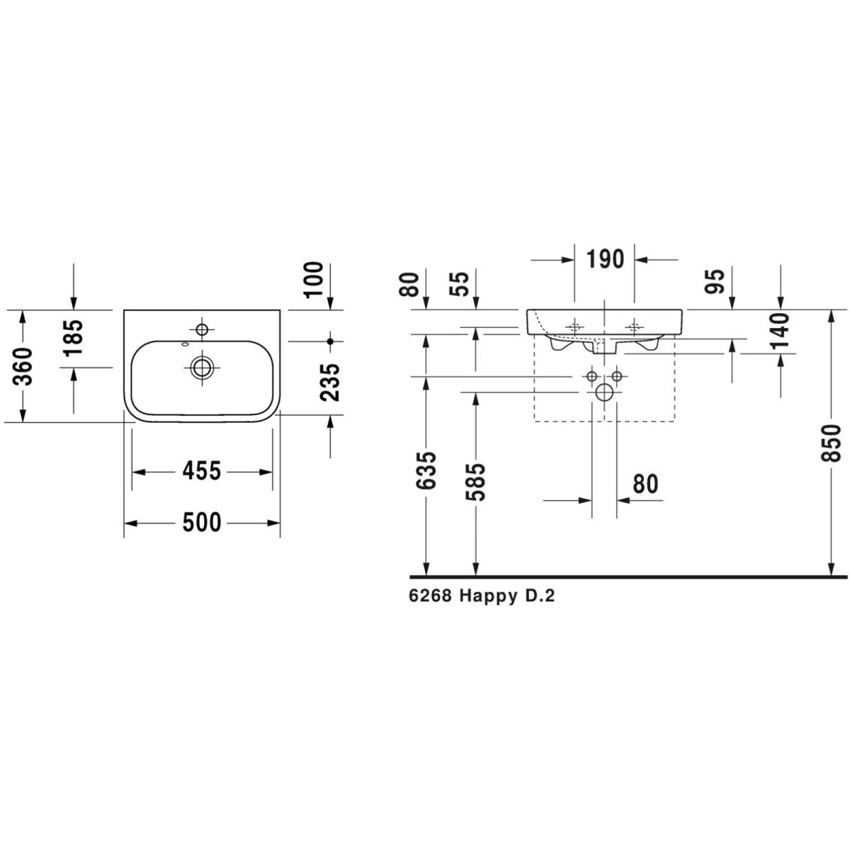 Duravit Happy D.2 Waschbecken 50x36 cm halbrund Möbel weiß 0710500000