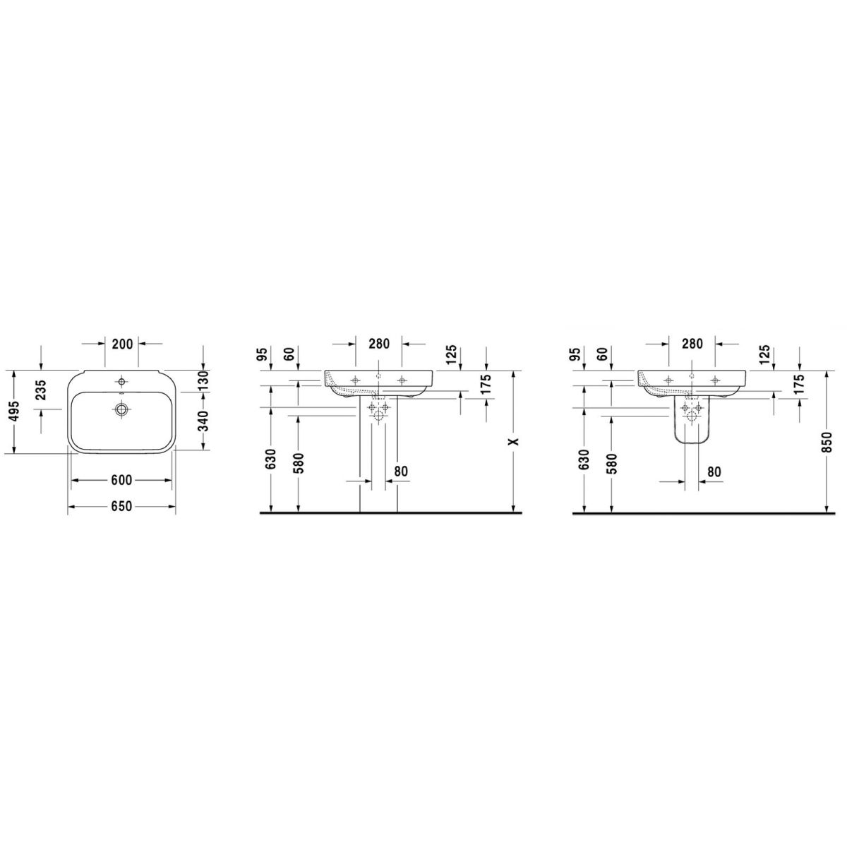 Duravit Happy D.2 Waschbecken 65x49.5 cm rechteckig Klassisch weiß 2316650000