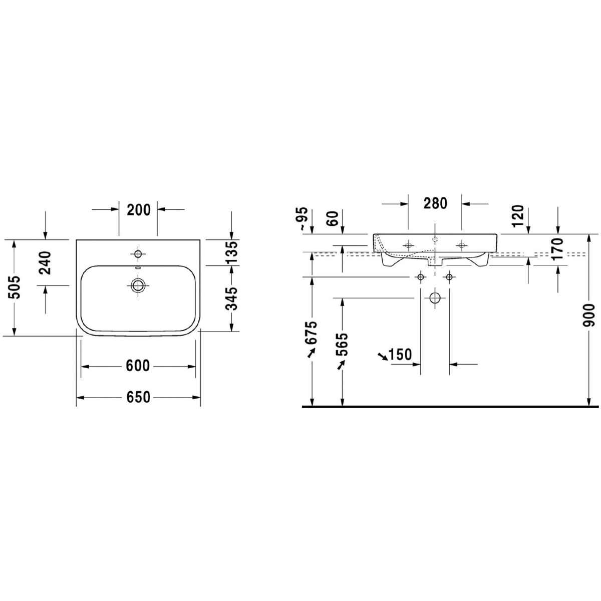 Duravit Happy D.2 Waschbecken 65x50.5 cm rechteckig Klassisch-Möbel weiß 2318650027