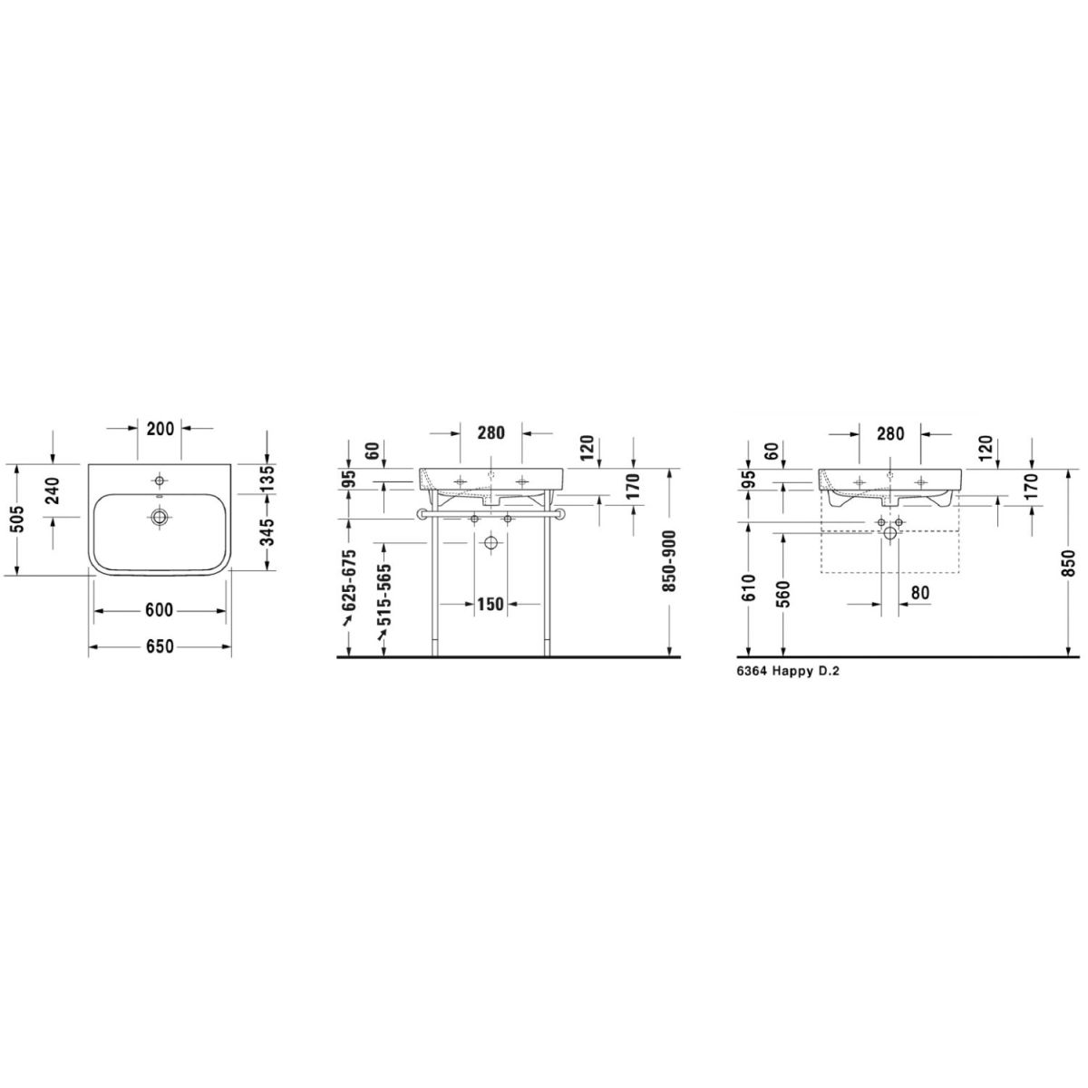 Duravit Happy D.2 Waschbecken 65x50.5 cm rechteckig Möbel weiß 2318650000