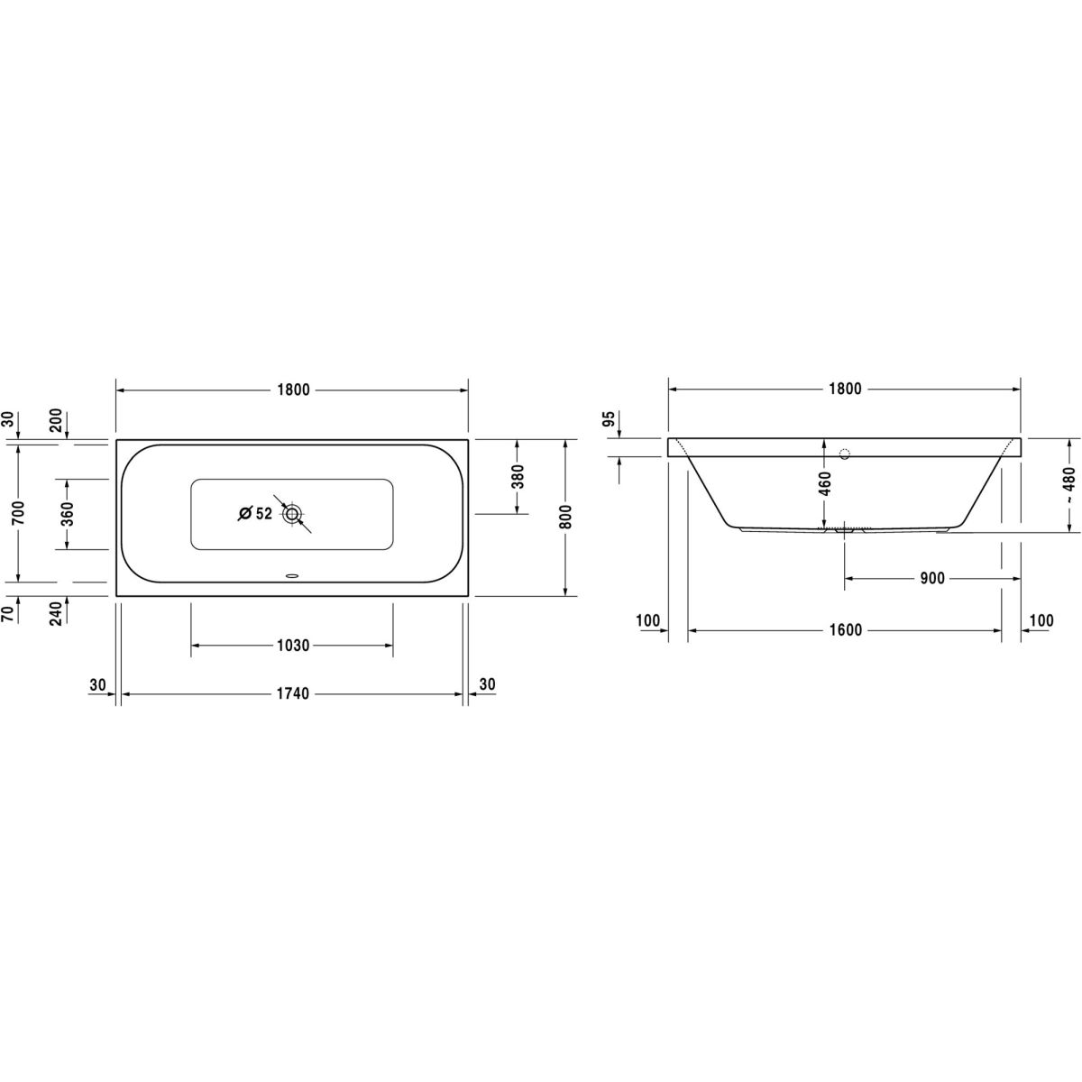 Duravit Happy D. Rechteckige Badewanne 180x80 cm weiß 700314000000000