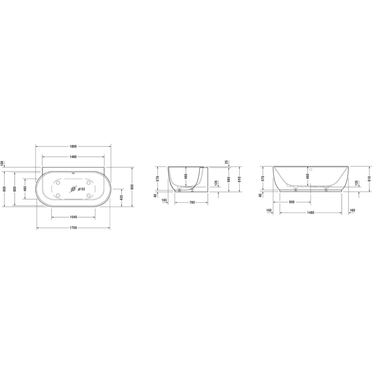 Duravit Luv Wandmontierte Badewanne 180x95 cm oval weiß 700433000000000