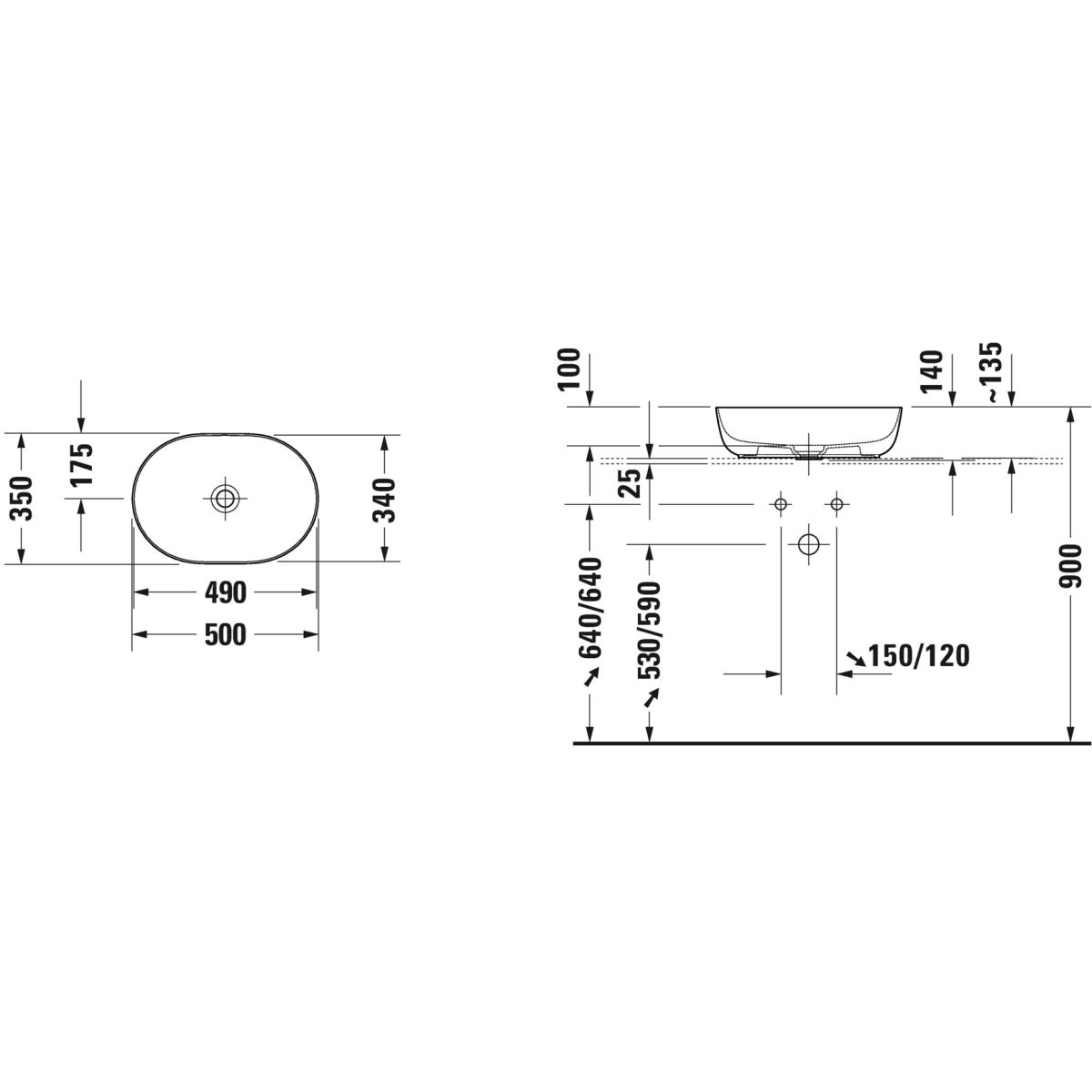 Duravit Luv Waschbecken 50x35 cm oval Aufsatzwaschbecken weiß 0379500000