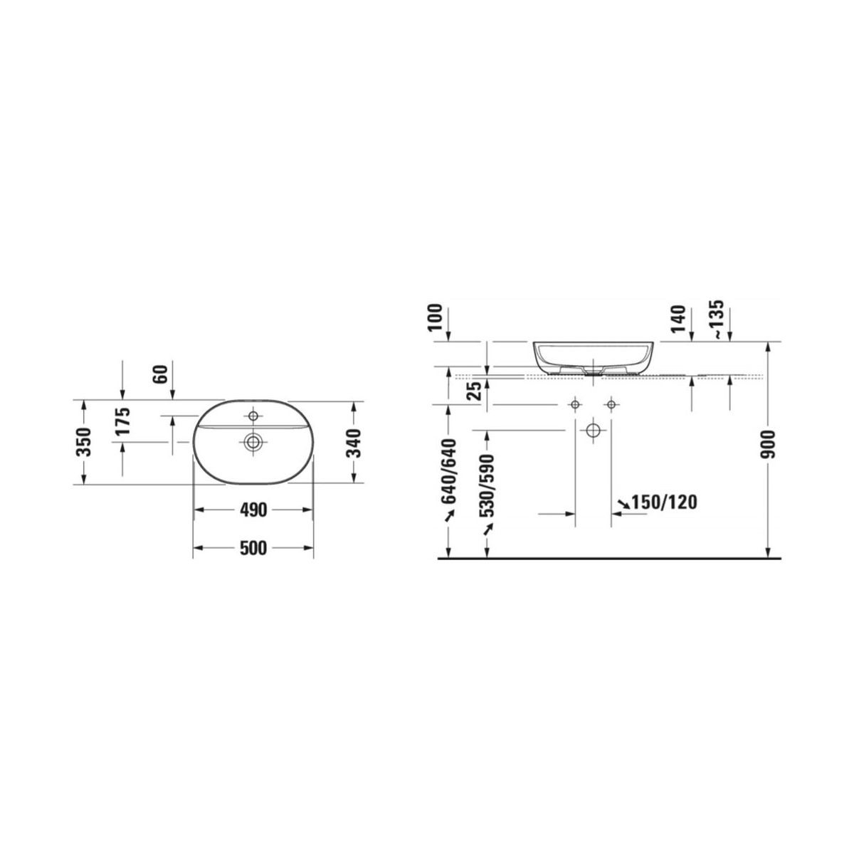 Duravit Luv Waschbecken 50x35 cm oval Aufsatzwaschbecken weiß 0380500000