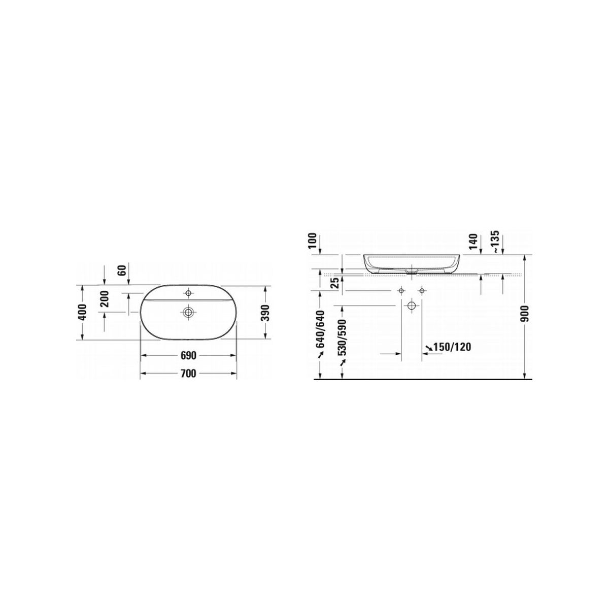 Duravit Luv Waschbecken 70x40 cm oval Aufsatzwaschbecken weiß 0380702600