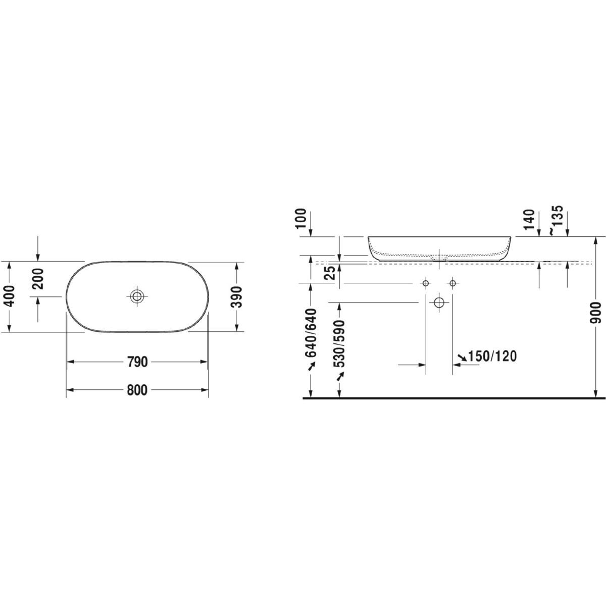Duravit Luv Waschbecken 80x40 cm oval Aufsatzwaschbecken weiß 0379800000