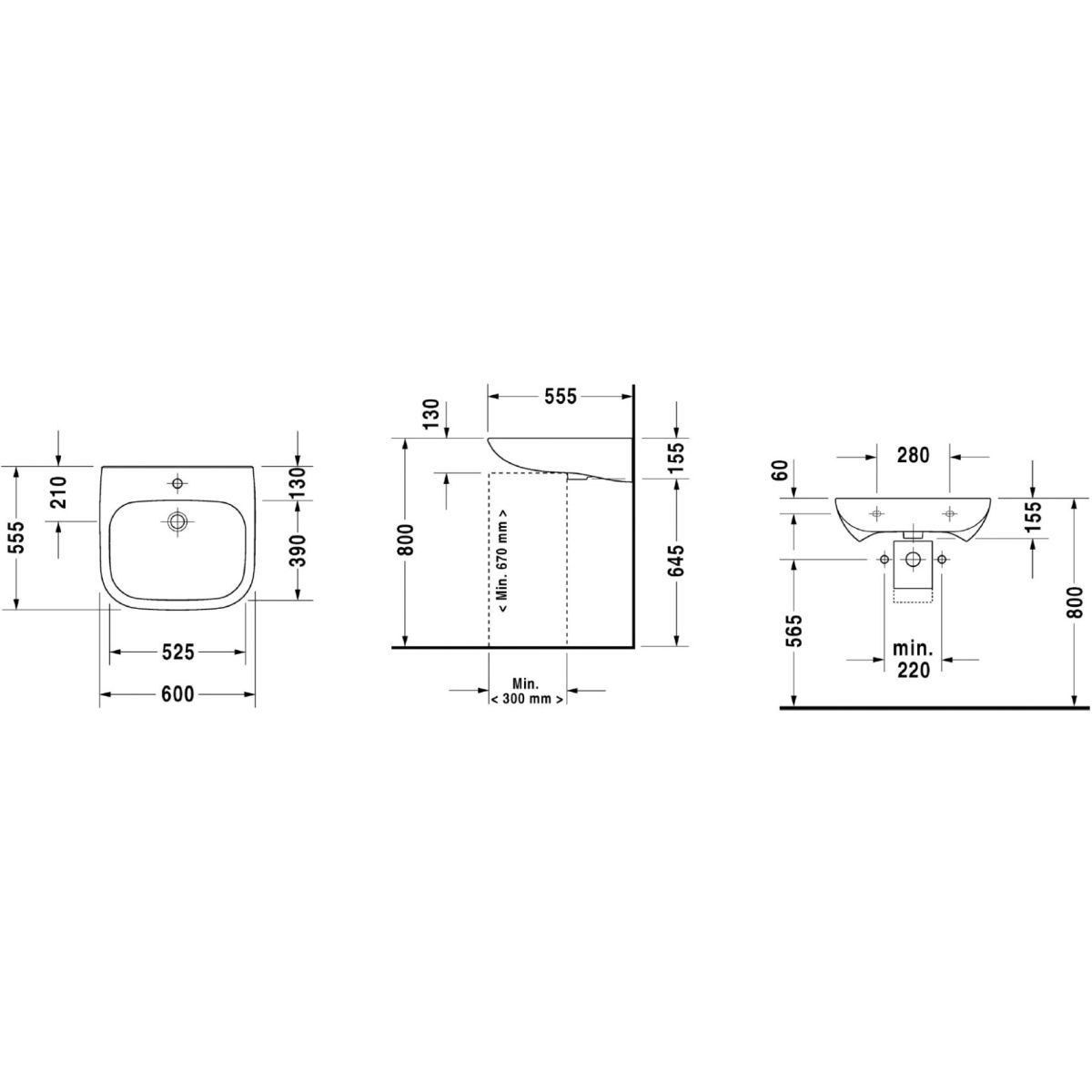 Duravit Med Waschbecken 60x55.5 cm rechteckig Klassisch für Behinderte weiß 23136000002