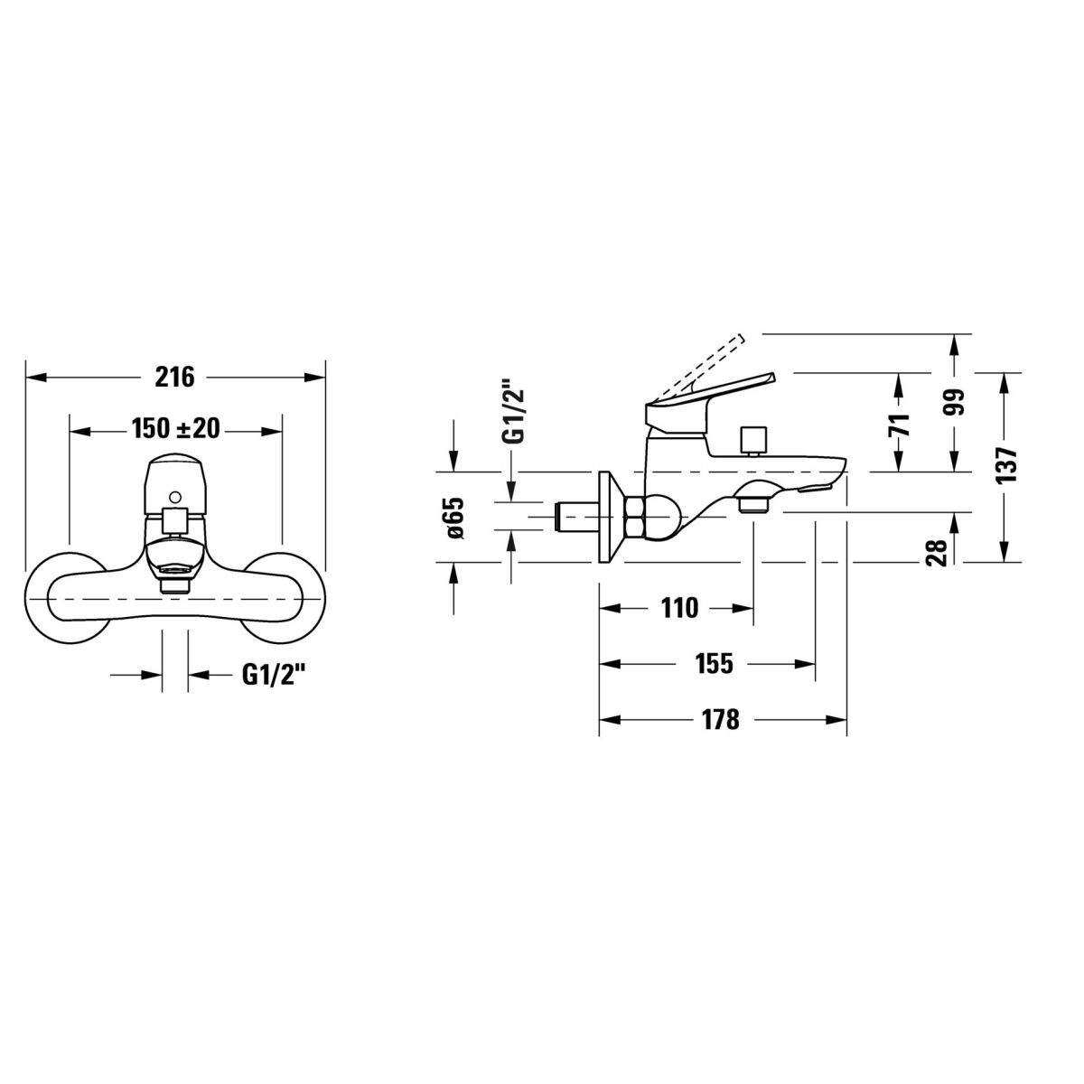 Duravit No. 1 Badewannen- und Duscharmatur Wandmontage chrom N15230000010