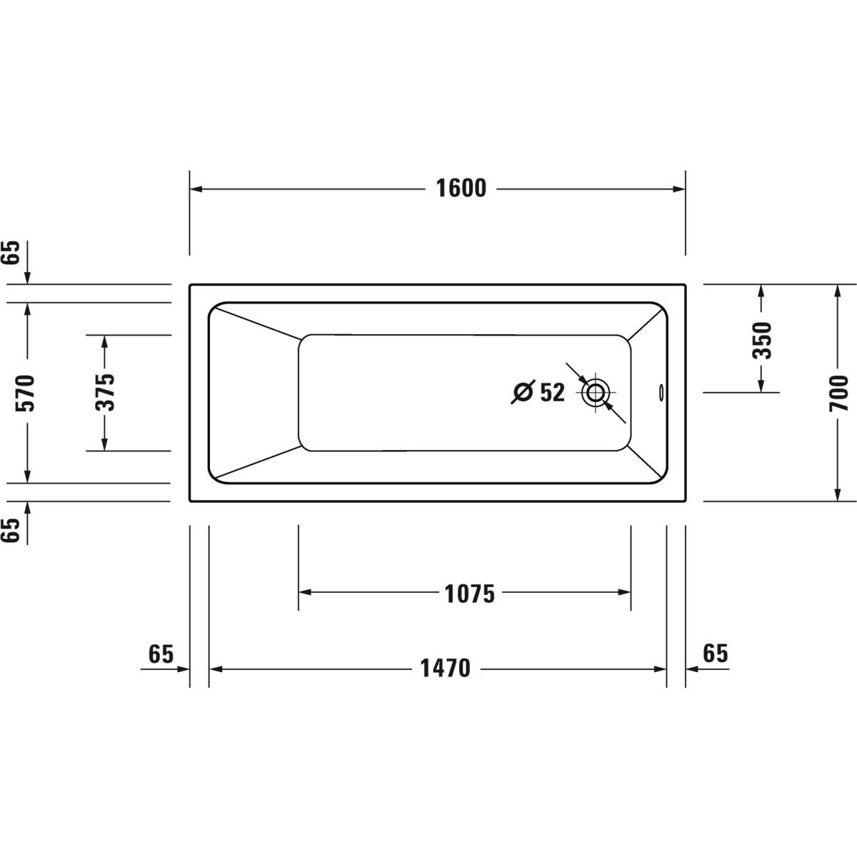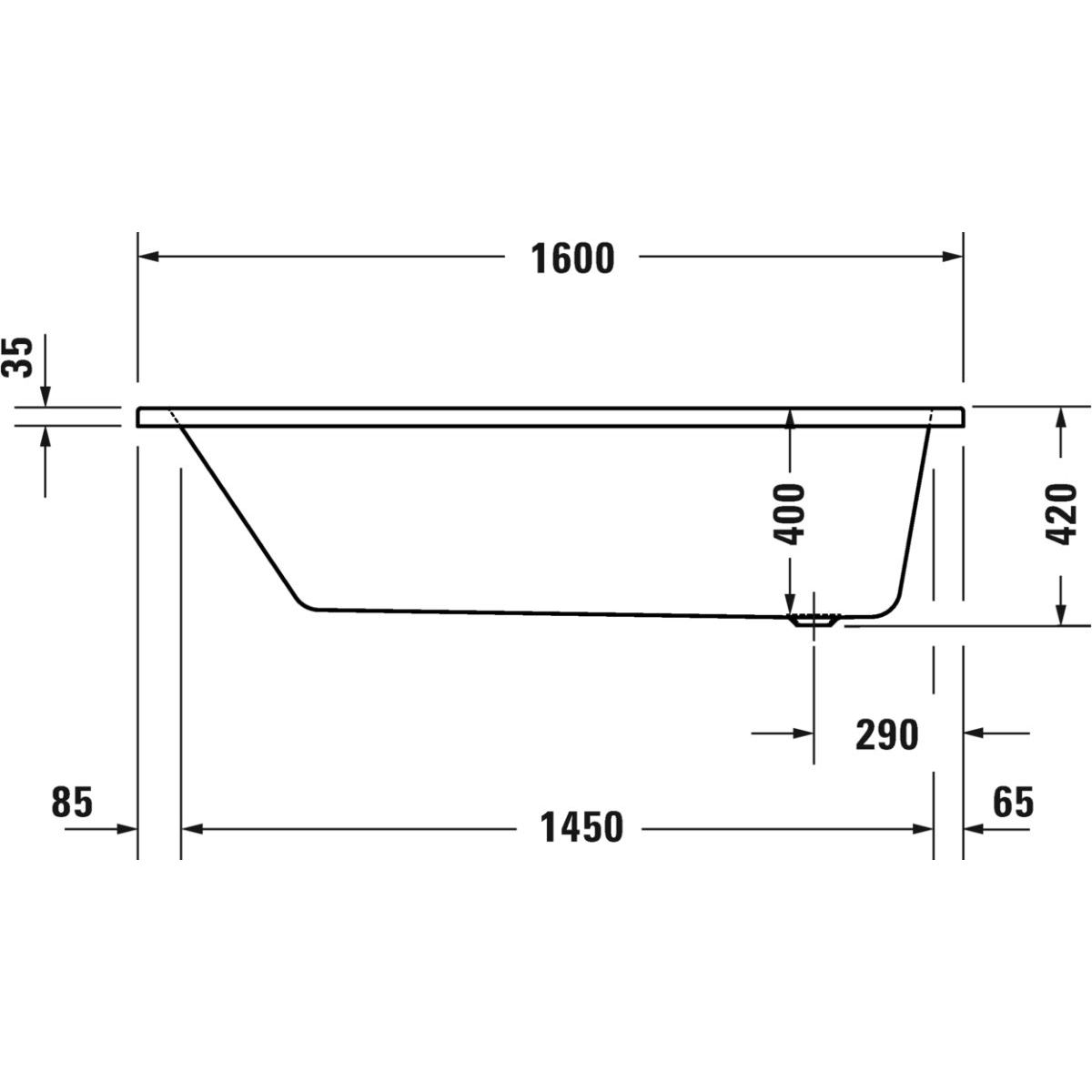 Duravit No. 1 Rechteckige Badewanne 160x70 cm weiß 700488000000000