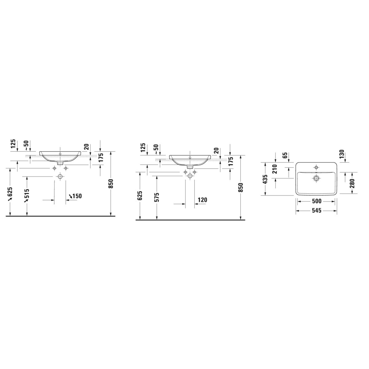 Duravit No. 1 Waschbecken 54.5x43.5 cm rechteckig Klassisch weiß 03555500272