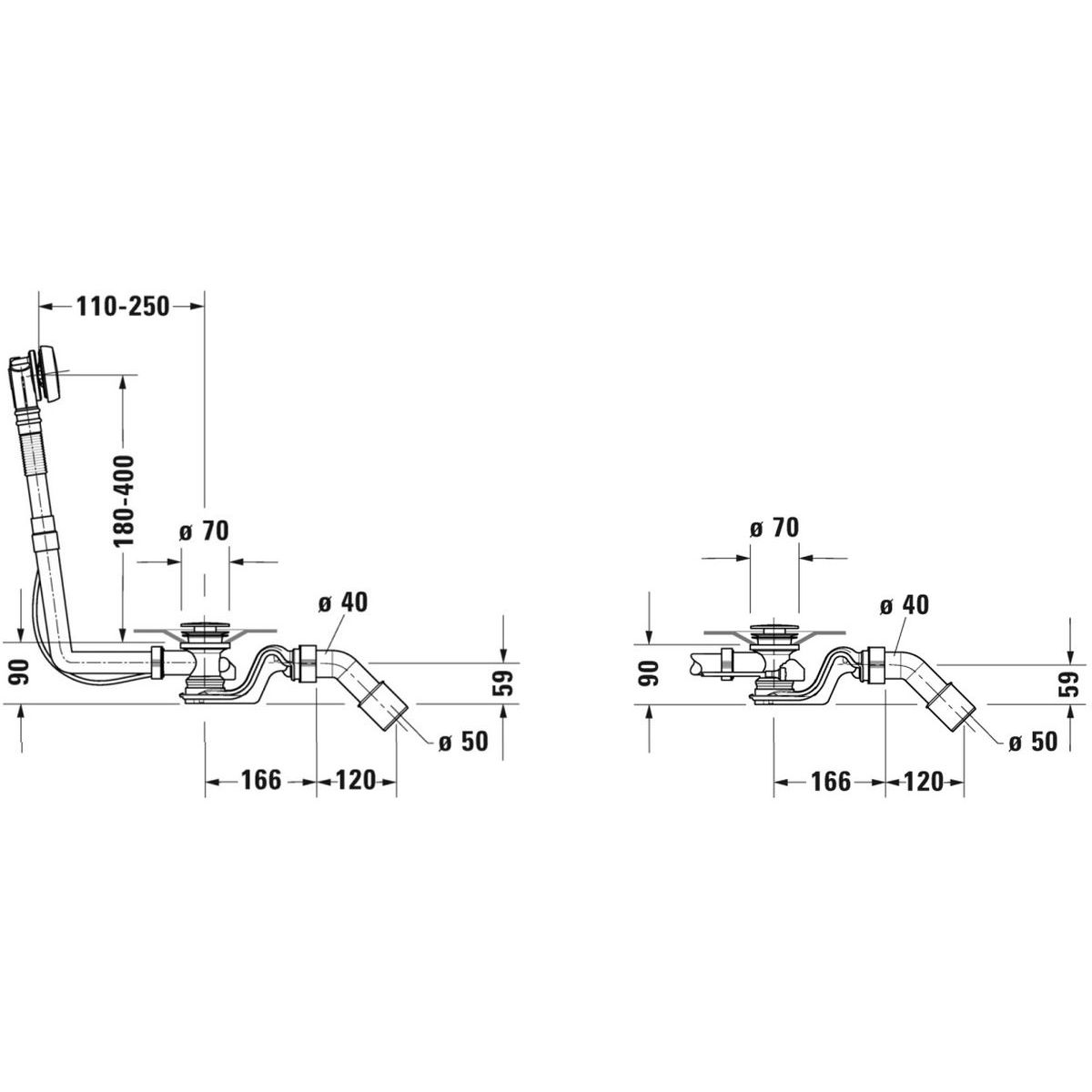 - für Badewannen mit seitlichem Abfluss