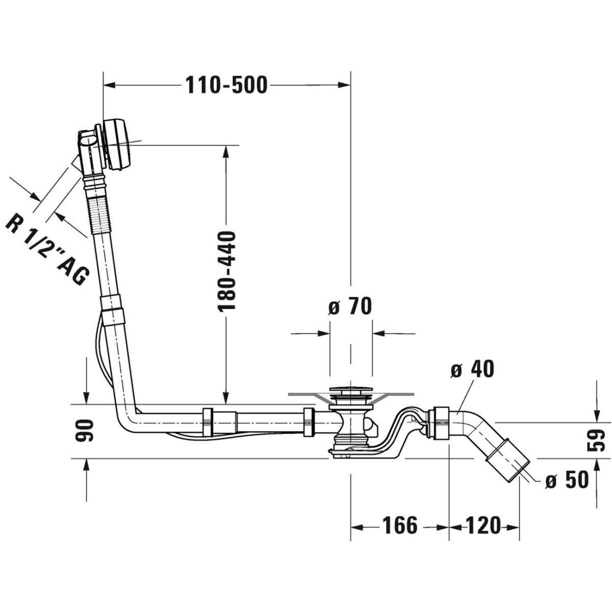 Duravit Quadroval Badewannensiphon chrom 792207000001000