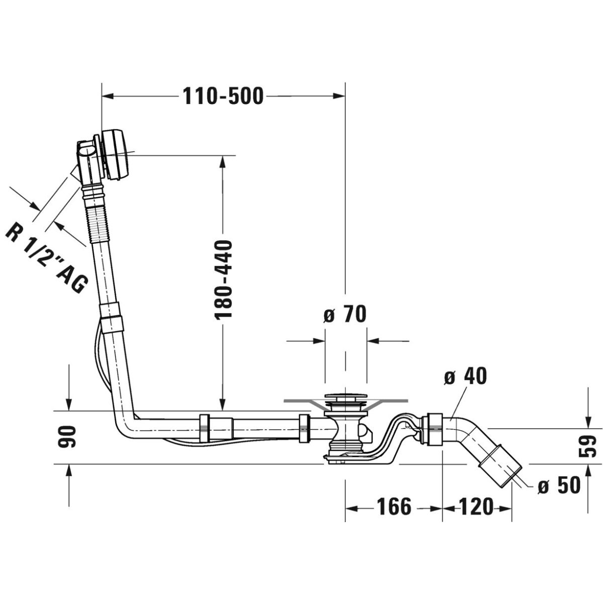 Duravit Quadroval Badewannensiphon chrom 792209000001000
