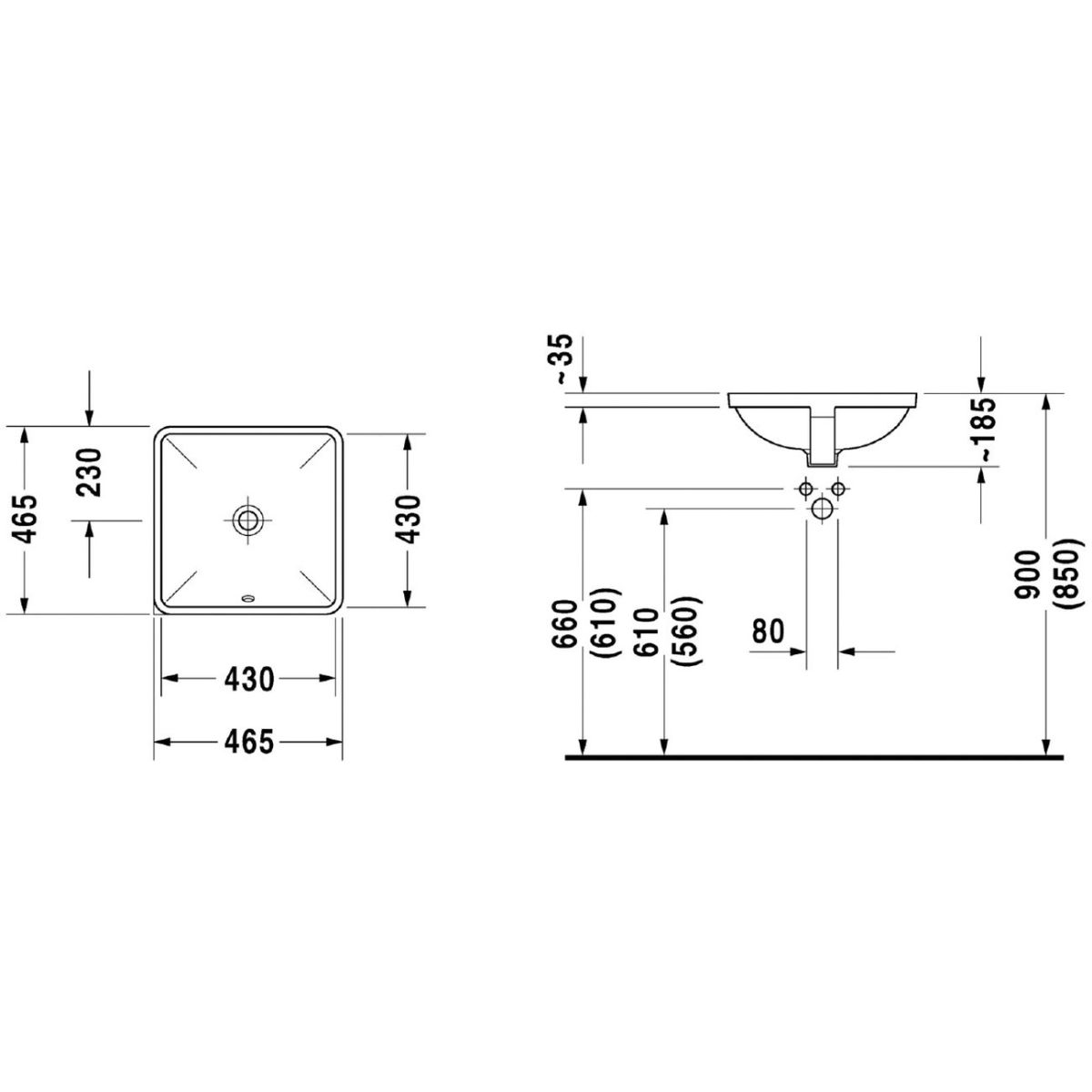 Duravit Starck 3 Waschbecken 43x43 cm quadratisch Unterbauwaschbecken weiß 0305430000