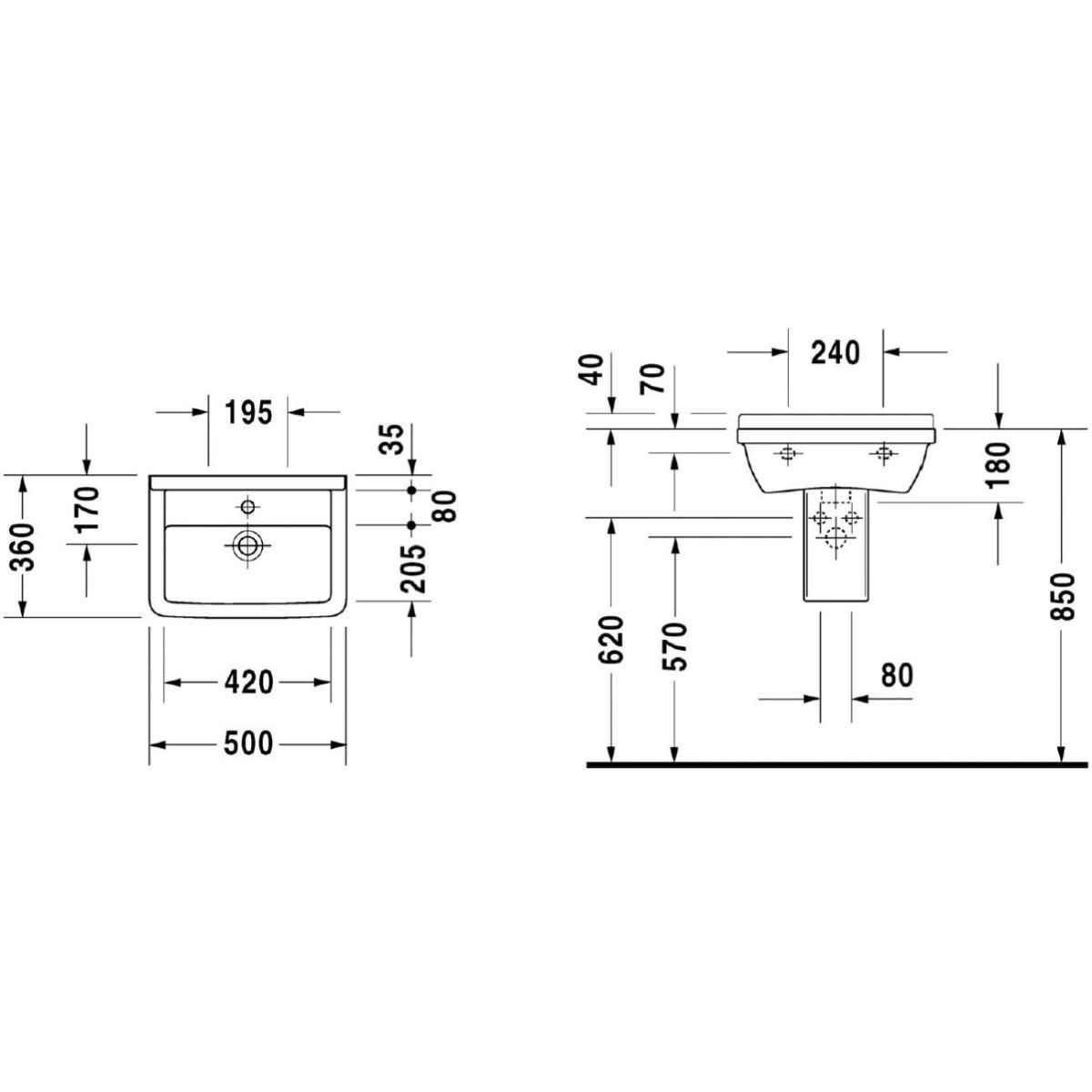 Duravit Starck 3 Waschbecken 50x36 cm rechteckig Klassisch weiß 0300500000