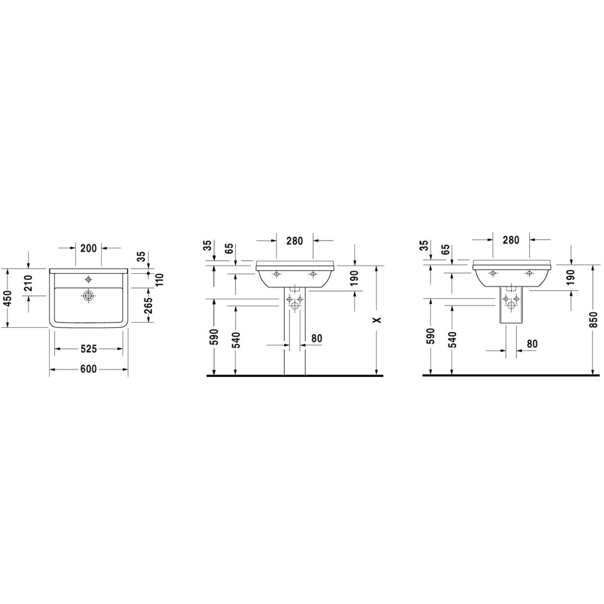 Duravit Starck 3 Waschbecken 60x45 cm rechteckig Klassisch weiß 0300600000