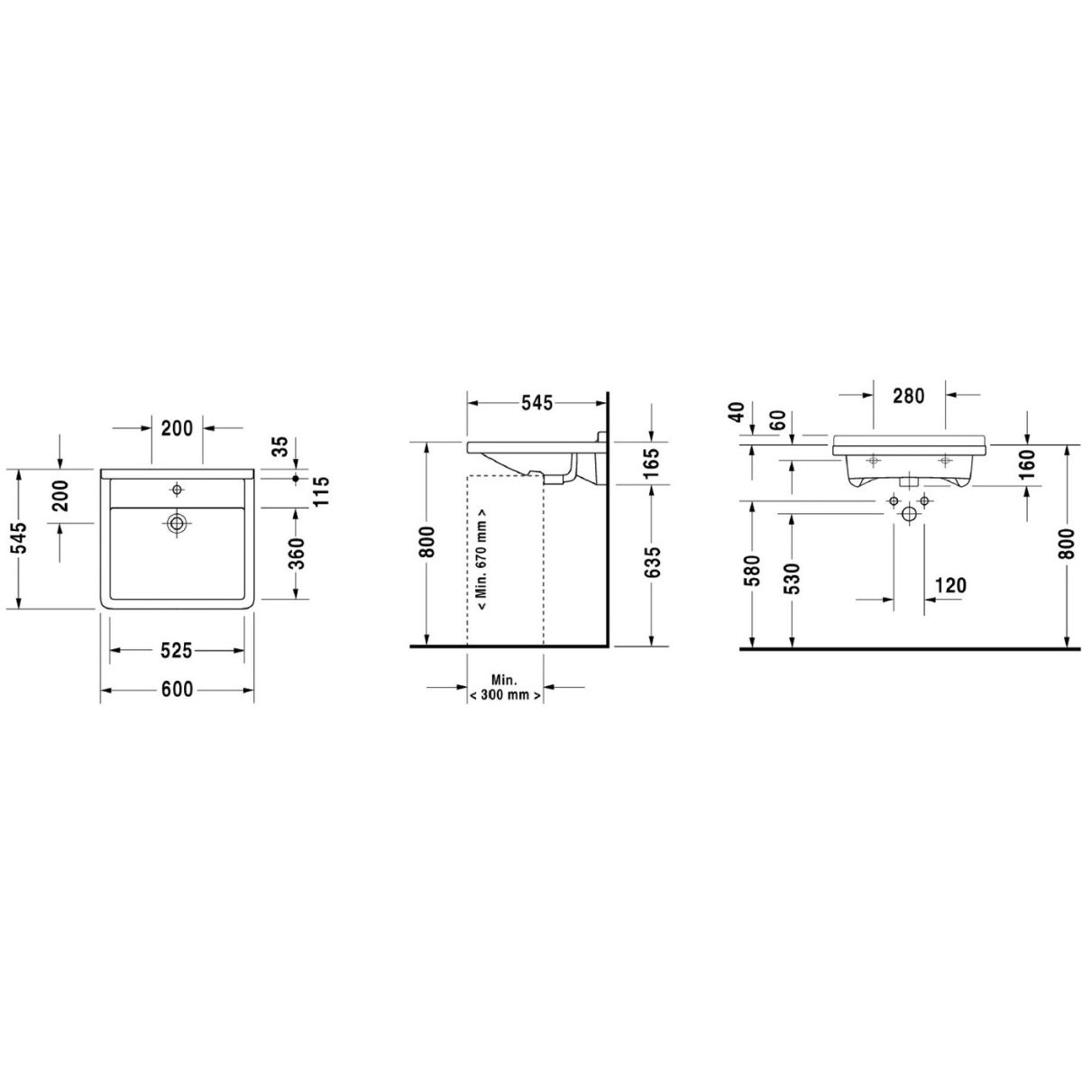 Duravit Starck 3 Waschbecken 60x54.5 cm rechteckig Klassisch für Behinderte weiß 0309600000