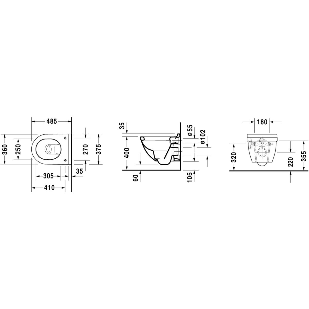 Duravit Starck 3 WC-Becken hängend weiß 2227090000
