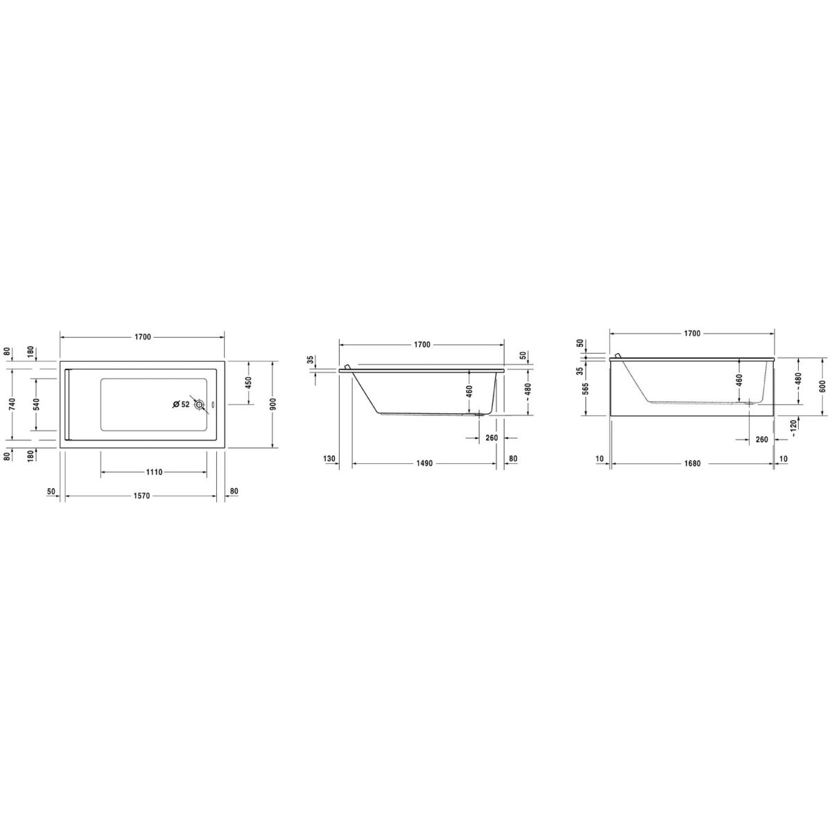 Duravit Starck Rechteckige Badewanne 170x90 cm weiß 700337000000000