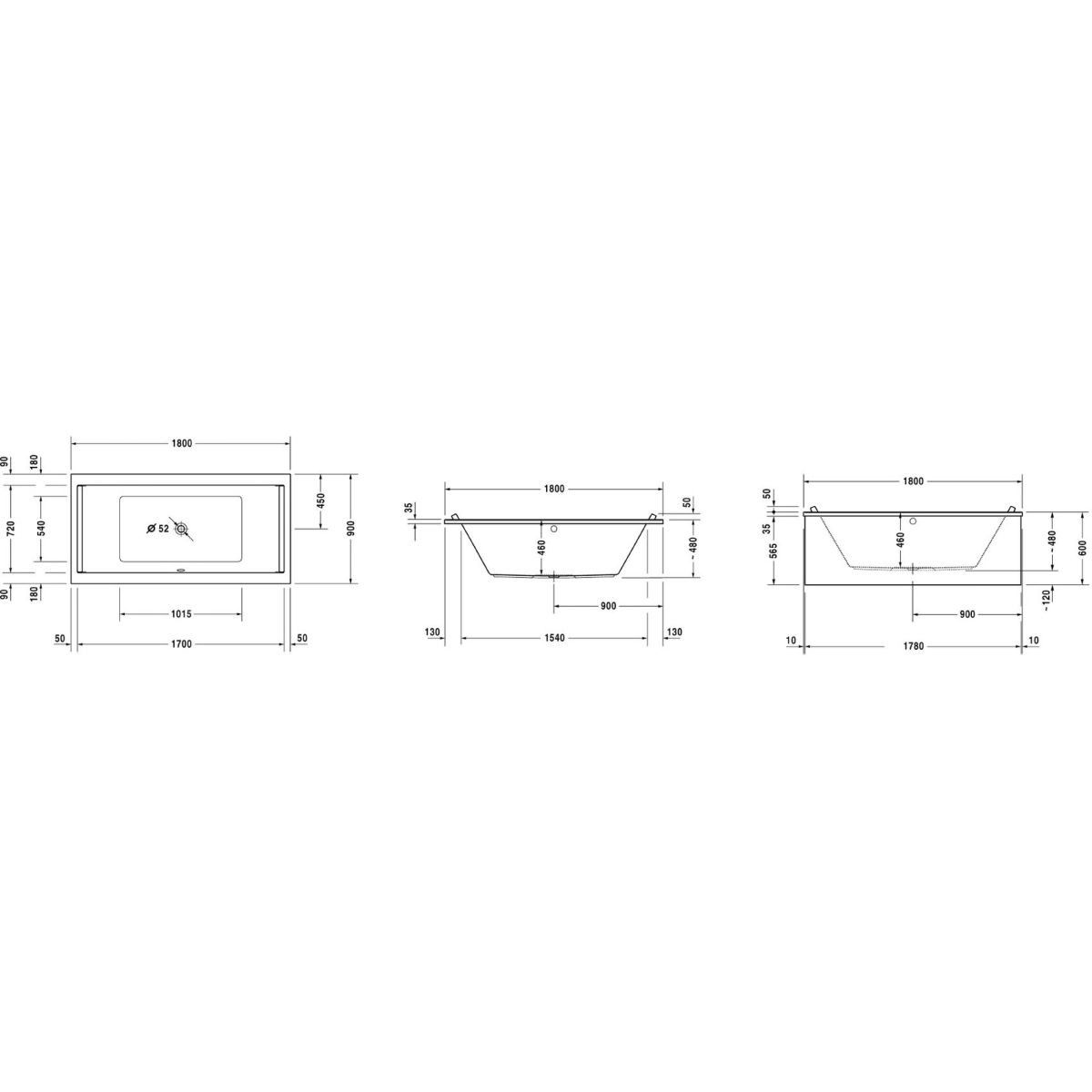 Duravit Starck Rechteckige Badewanne 180x90 cm weiß 700339000000000