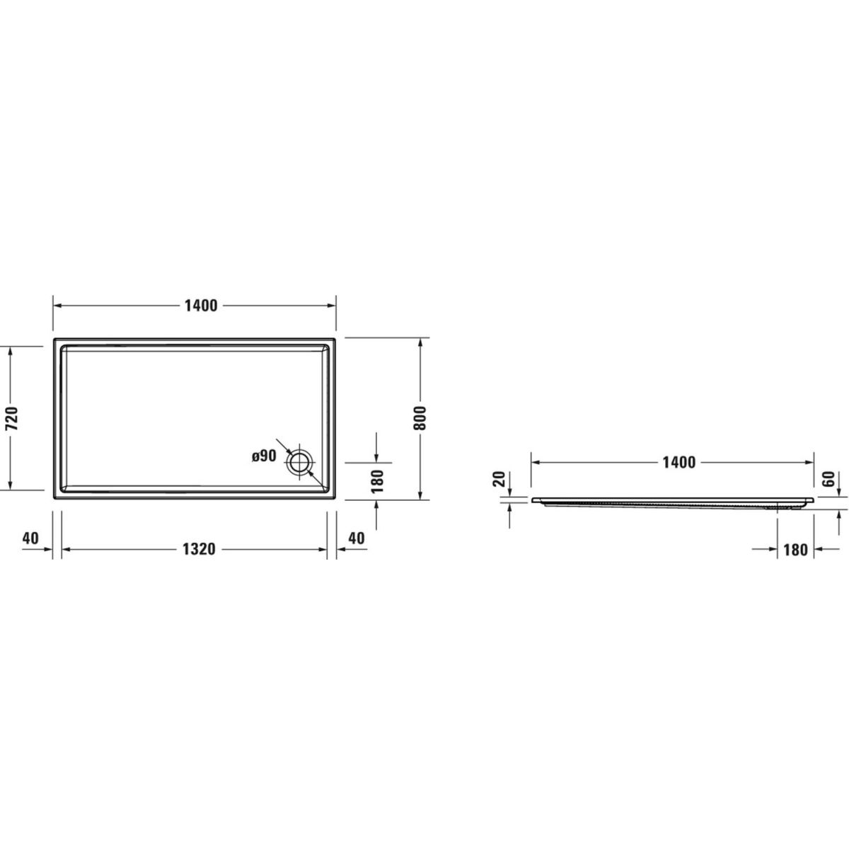 Duravit Starck Slimline Rechteckige Duschwanne 140x80 cm weiß 720236000000000