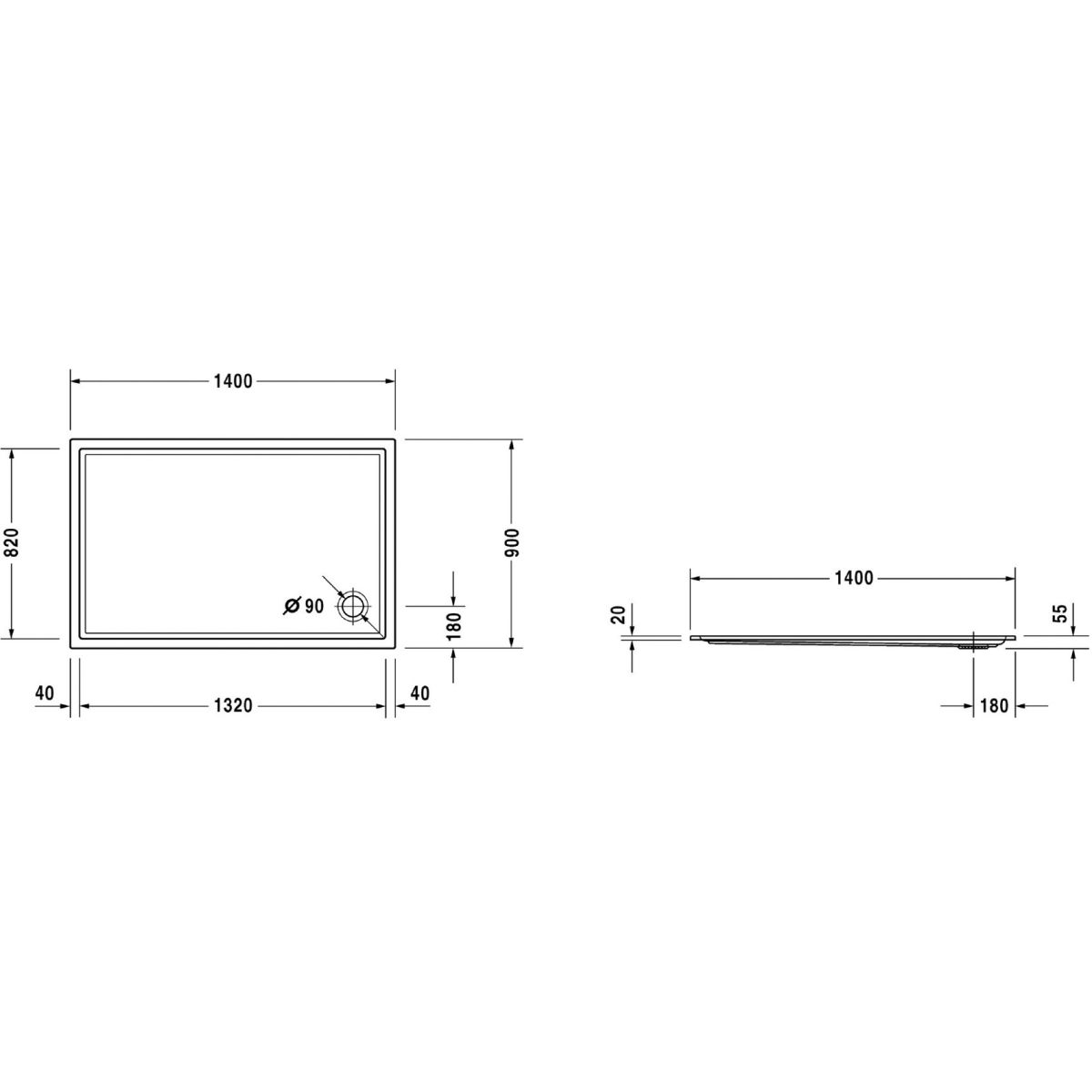 Duravit Starck Slimline Rechteckige Duschwanne 140x90 cm weiß 720126000000000