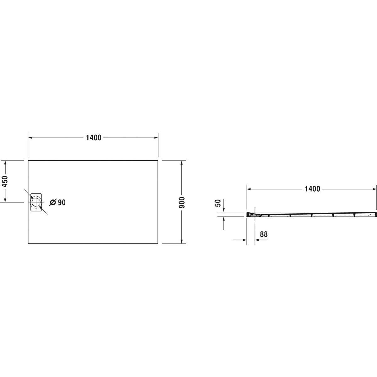 Duravit Stonetto Rechteckige Duschwanne 140x90 cm weiß 720150380000000