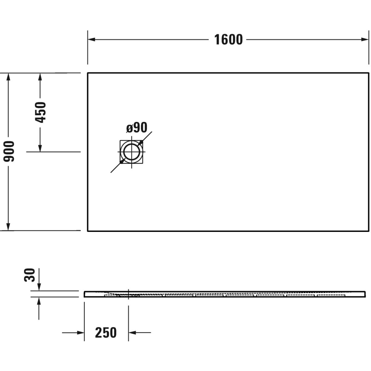 Duravit Sustano Rechteckige Duschwanne 160x90 cm weiß 720285740000000