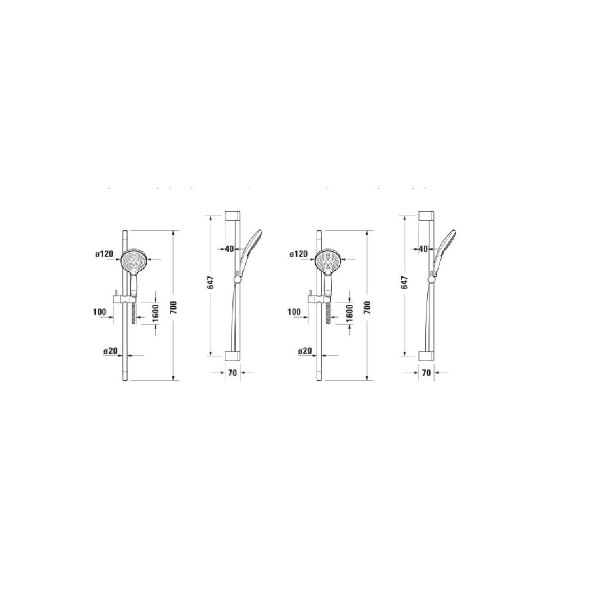 - Länge der Duschstange: 700 mm
