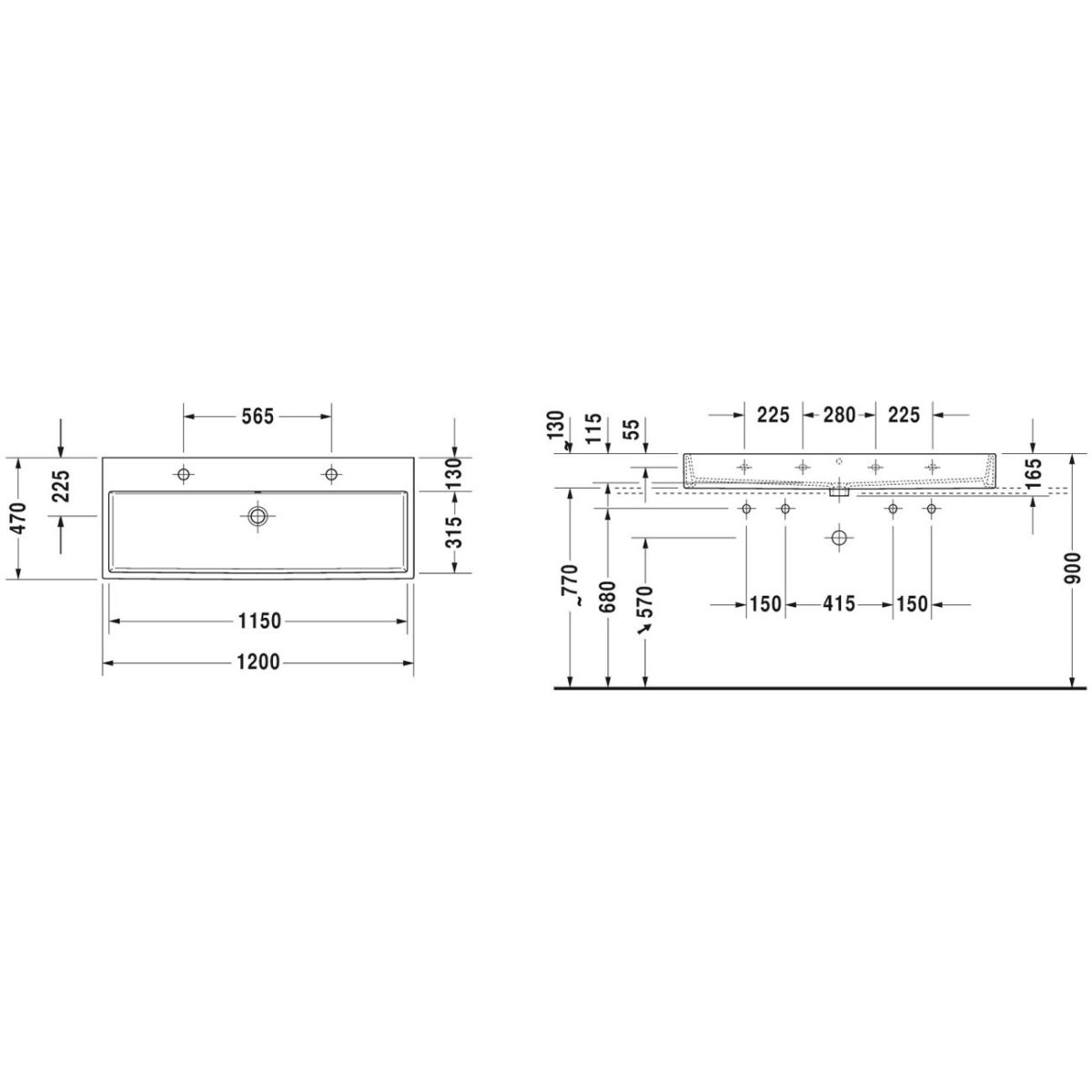 Duravit Vero Air Waschbecken 120x47 cm rechteckig Klassisch-Möbel weiß 2350120026