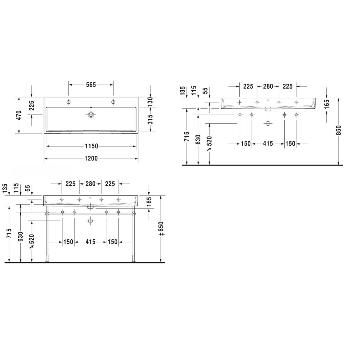 Duravit Vero Air Waschbecken 120x47 cm rechteckig Möbel weiß 2350120024