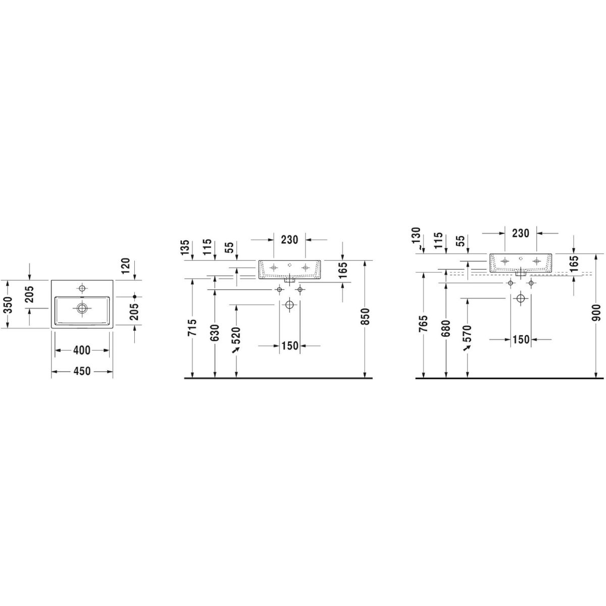 Duravit Vero Air Waschbecken 45x35 cm rechteckig Möbel weiß 0724450000