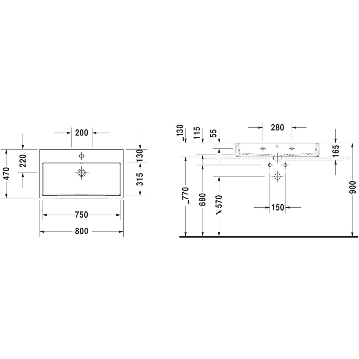 Duravit Vero Air Waschbecken 80x47 cm rechteckig Klassisch-Möbel weiß 2350800060