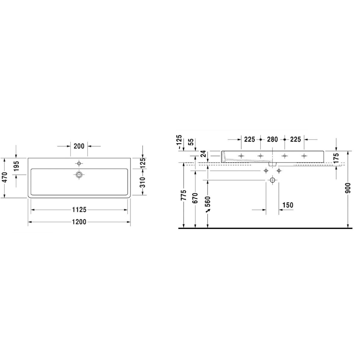 Duravit Vero Waschbecken 120x47 cm rechteckig Klassisch-Möbel weiß 0454120027