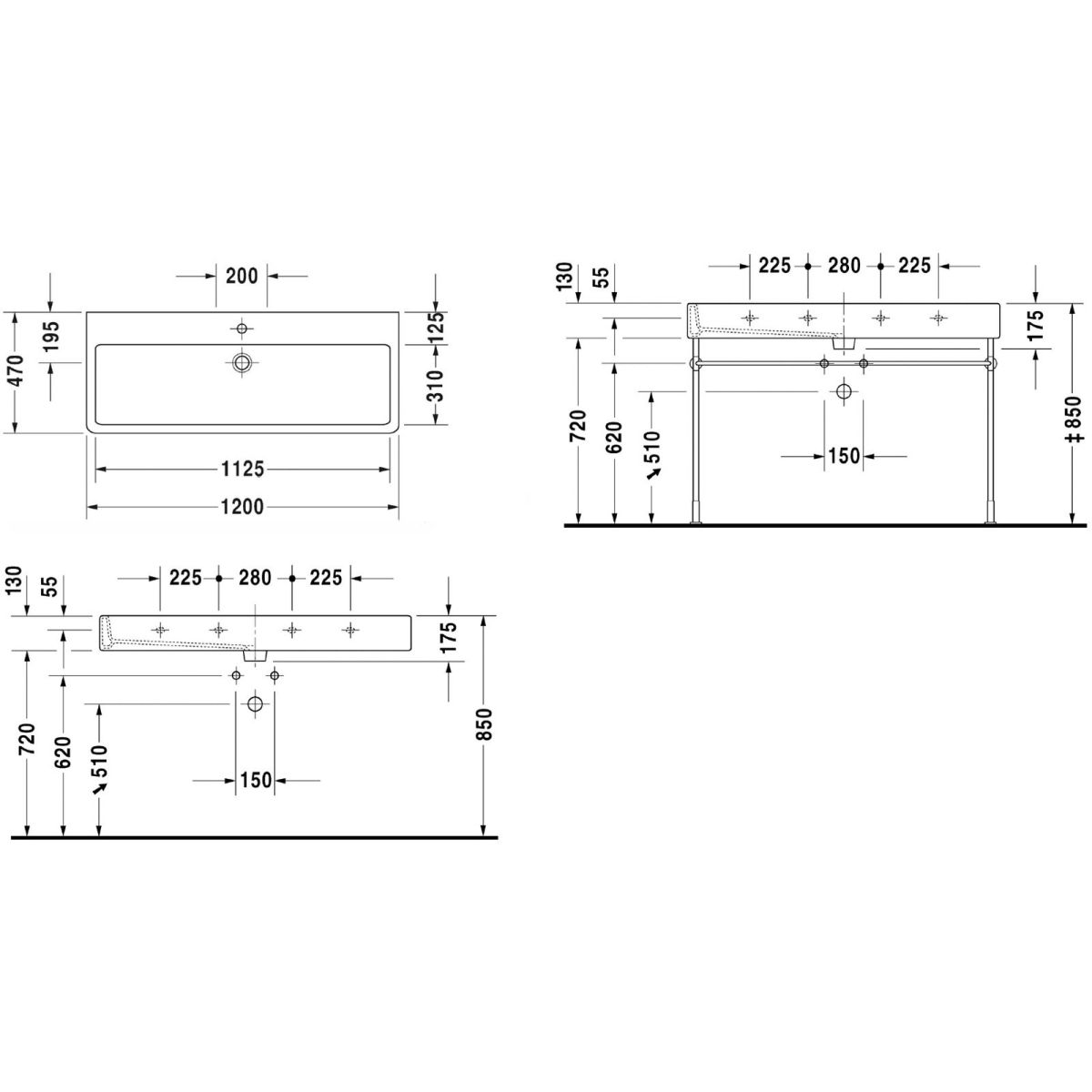 Duravit Vero Waschbecken 120x47 cm rechteckig Möbel weiß 0454120000