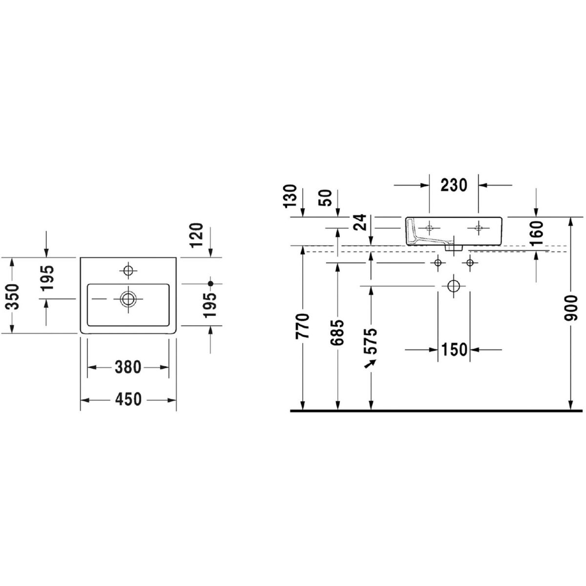 Duravit Vero Waschbecken 45x35 cm rechteckig Klassisch weiß 0704450027