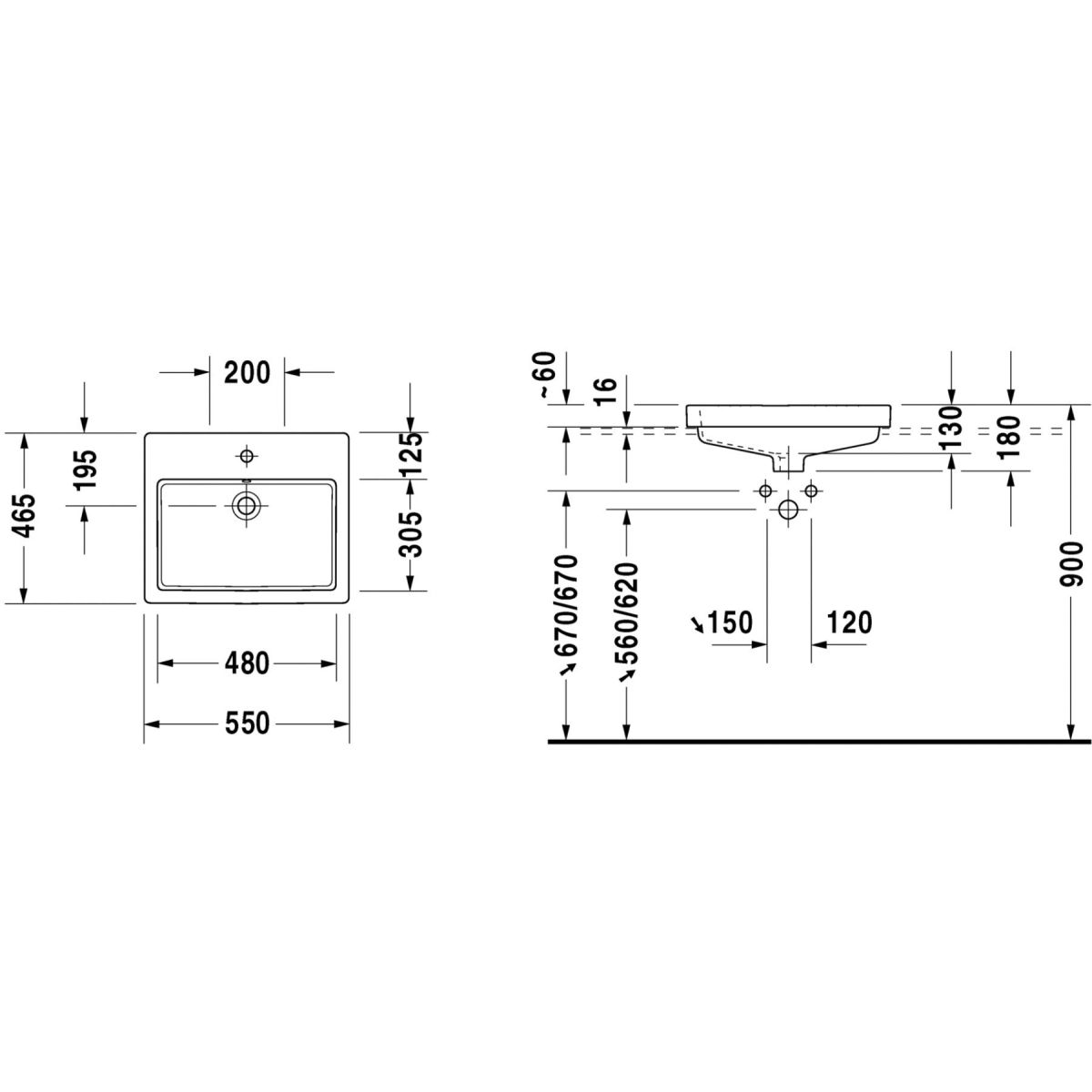Duravit Vero Waschbecken 55x46.5 cm rechteckig Einbauwaschbecken weiß 0315550000