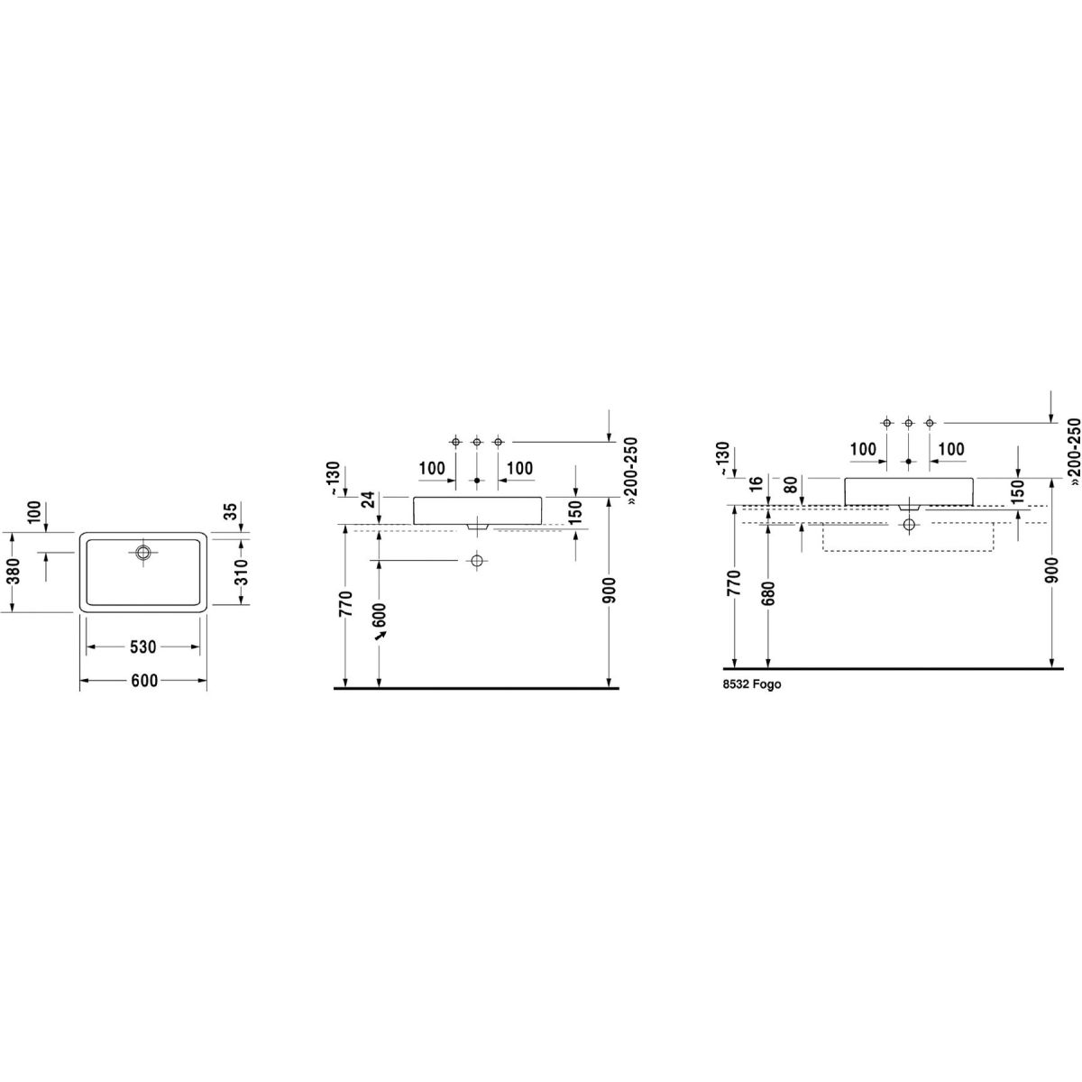Duravit Vero Waschbecken 60x38 cm rechteckig Aufsatzwaschbecken weiß 0455600000