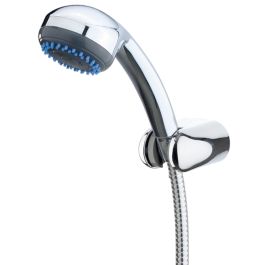 Duschset EUROMIX 4. Im Set enthalten: Kunststoff-Duschkopf mit drei Betriebsmodi, mit Netz gegen Kalkablagerungen; Metallschlauch 1,5 m, 1/2" Durchmesser, Wandhalterung. Farbe: Chrom.