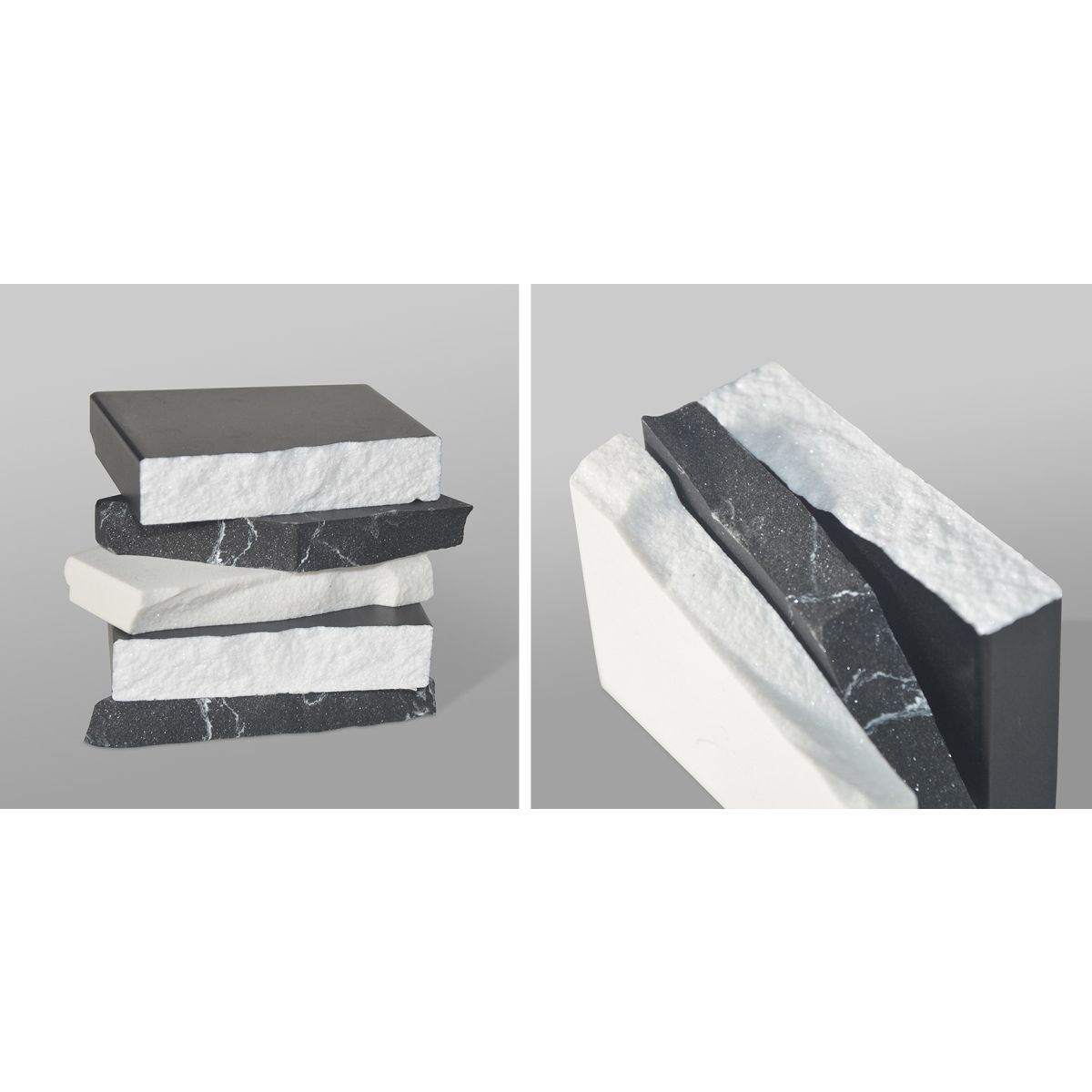 - Material: Kompaktmarmor (besteht zu 97 % aus recyceltem Marmor + 3 % Naturharz, wird nach der Herstellung mit Keramikfarbe lackiert und im Ofen gehärtet)
