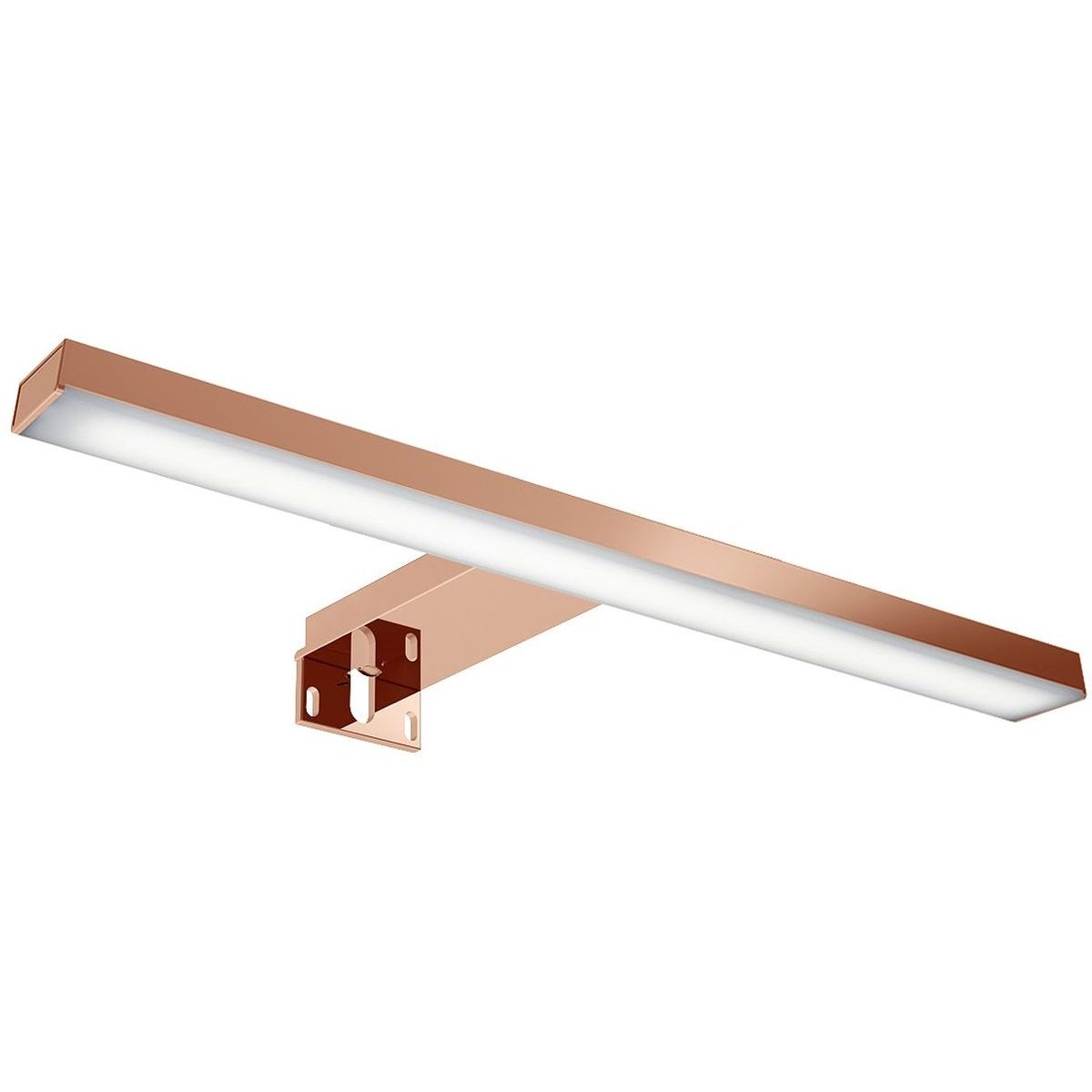 Die LED-Wandleuchte ESTHER hat eine moderne und beliebte Form. Die rosagoldene Leuchte verfügt über eingebaute Lichtquellen auf Basis hochwertiger SMD-LEDs, die eine lange Lebensdauer garantieren. Die Wandleuchte ist für die Montage an Spiegeln und Hängeschränken mit Spiegeln vorgesehen.