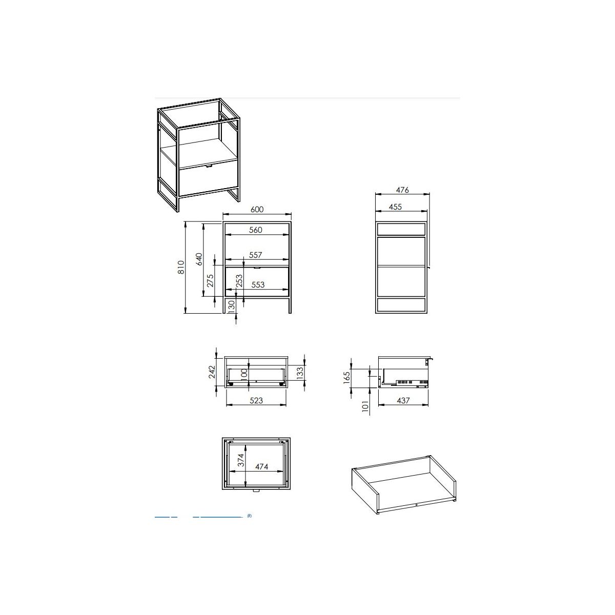 - dünne Stahlseitenwände der Schublade mit einer Stärke von 13 mm