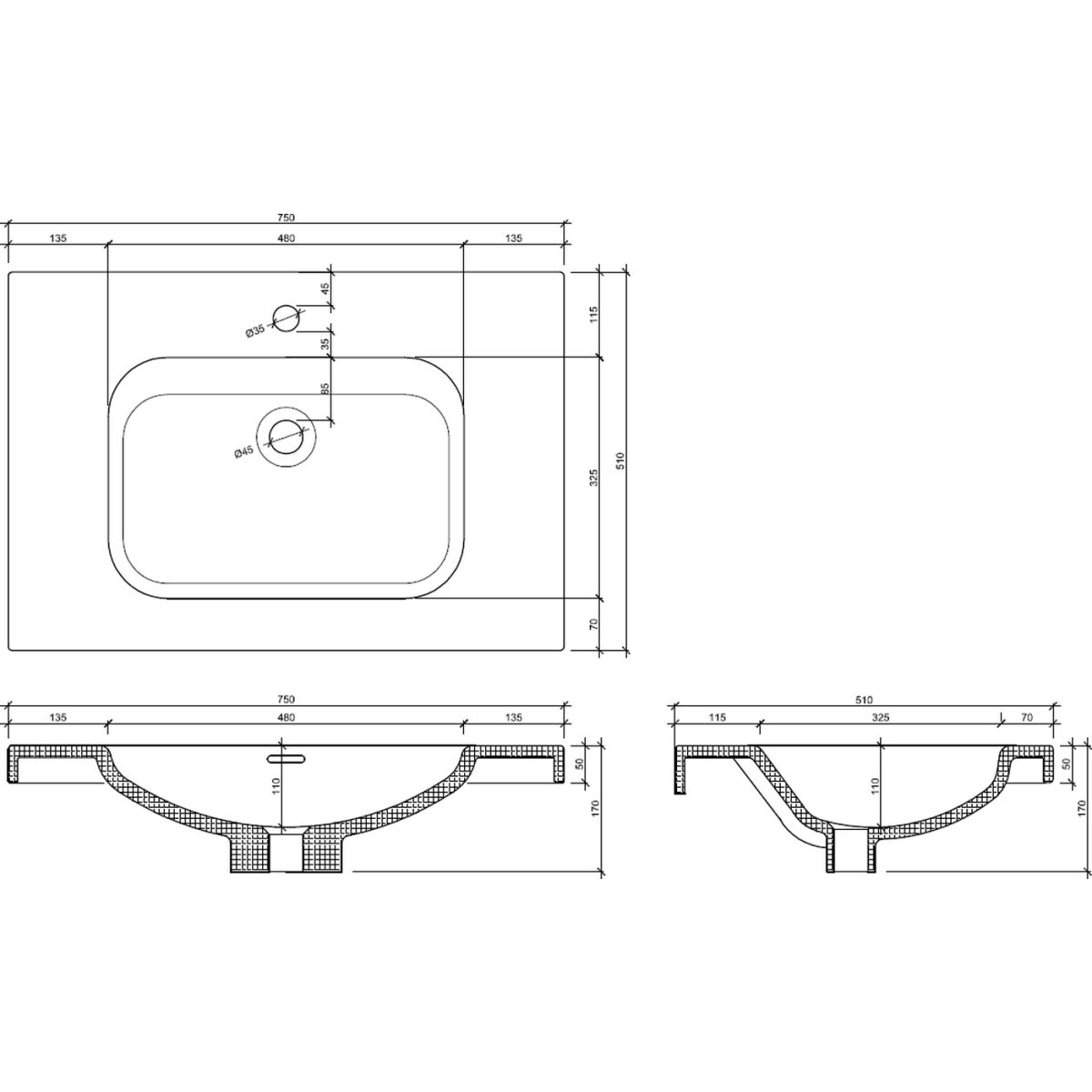 Elita Iwa Waschbecken 75x51 cm rechteckig Möbel weiß RE040700108060