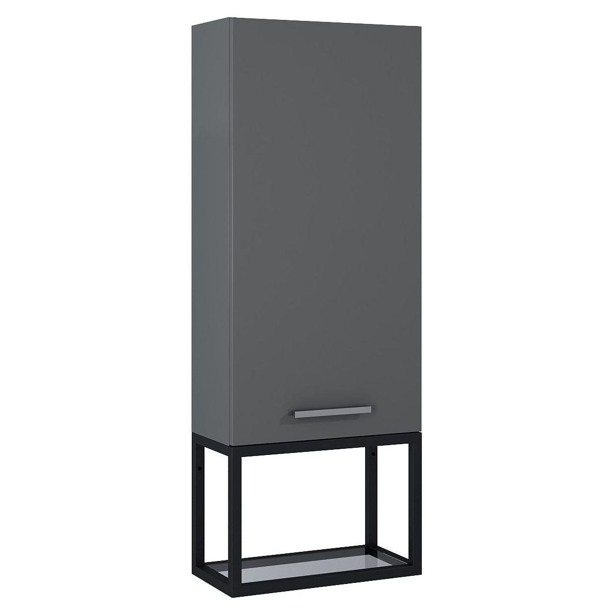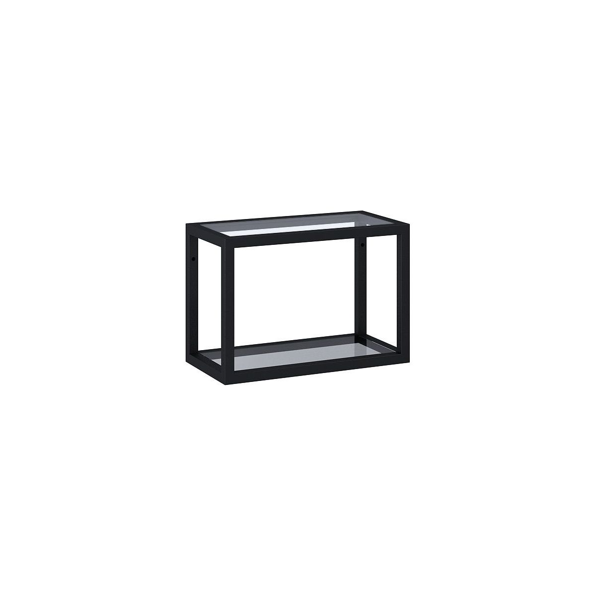 Leichter, filigraner Rahmen in Schwarz matt, aus pulverbeschichtetem Metall, mit 2 Glasböden. Eine perfekte Lösung für Badezimmer im Loft- und Industrial-Stil, in denen Minimalismus, schlichtes Metall und Holz dominieren. Die Rahmen können zusammen oder separat aufgehängt werden.