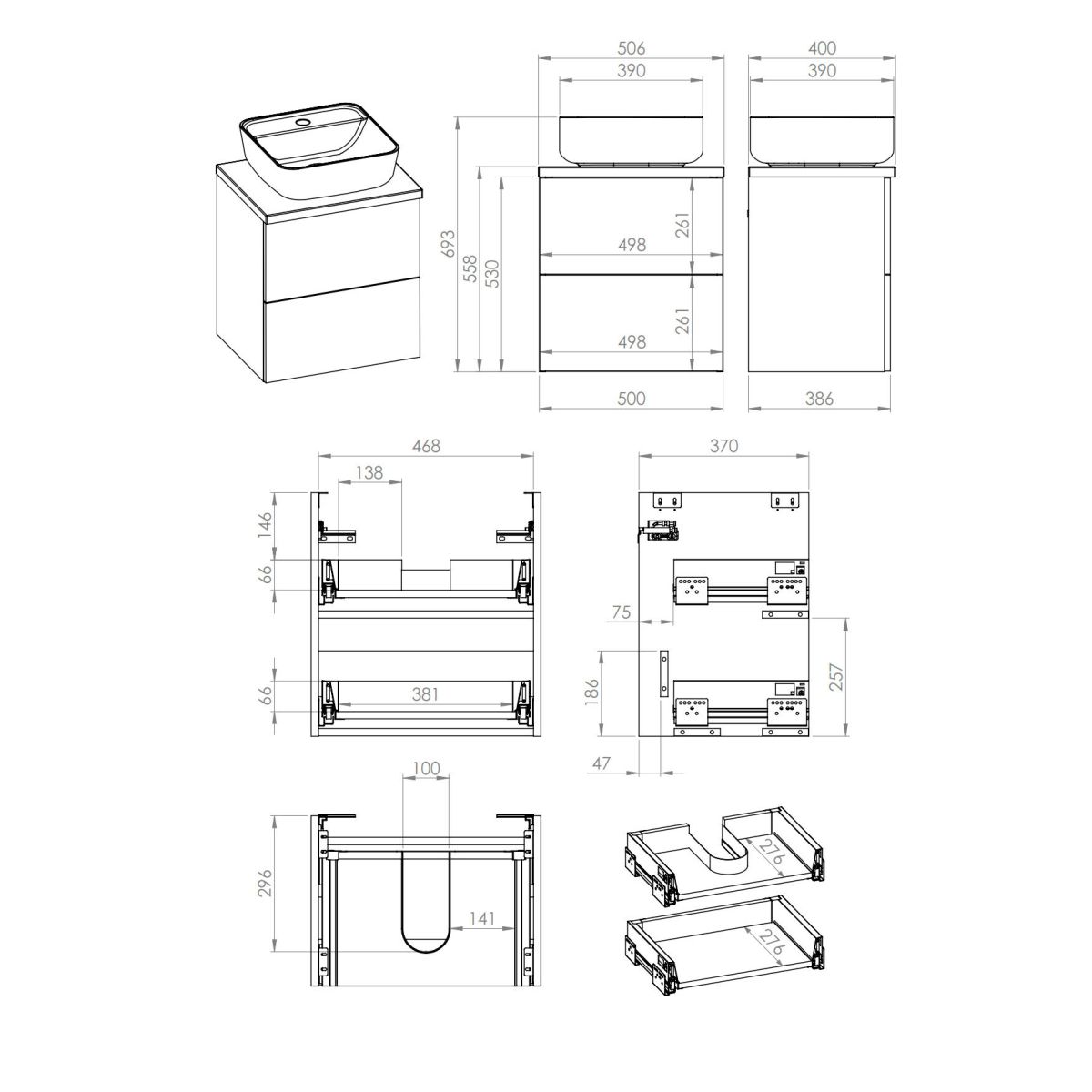 Der Preis gilt nur für das Möbelset: Waschbecken mit Schrank und Arbeitsplatte. Griffe sind separat erhältlich.