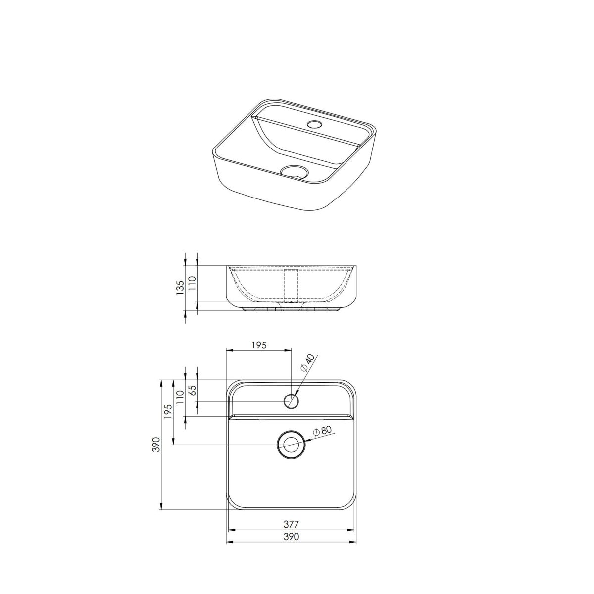 - Keramikwaschbecken Tonia, weiß, mit Loch für Wasserhahn, ohne Überlauf