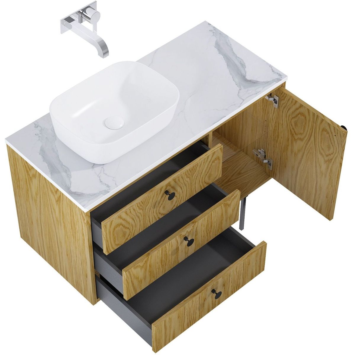 - Vollschublade ohne Ausschnitt für Siphon, nur platzsparender Siphon montierbar