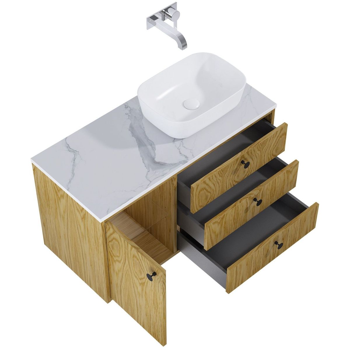 - Vollschublade ohne Ausschnitt für Siphon, nur platzsparender Siphon montierbar